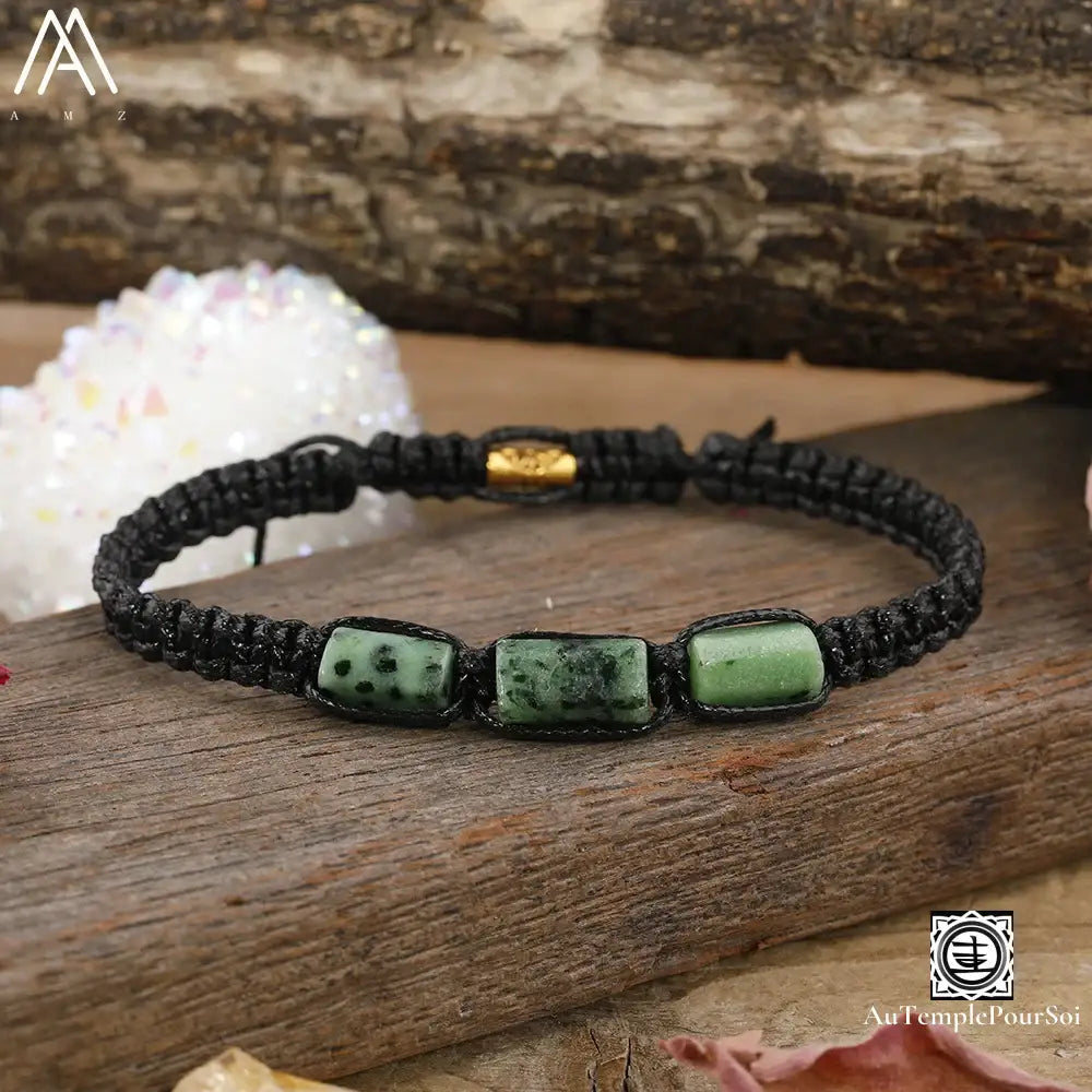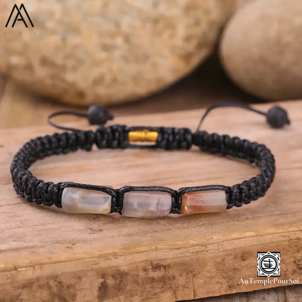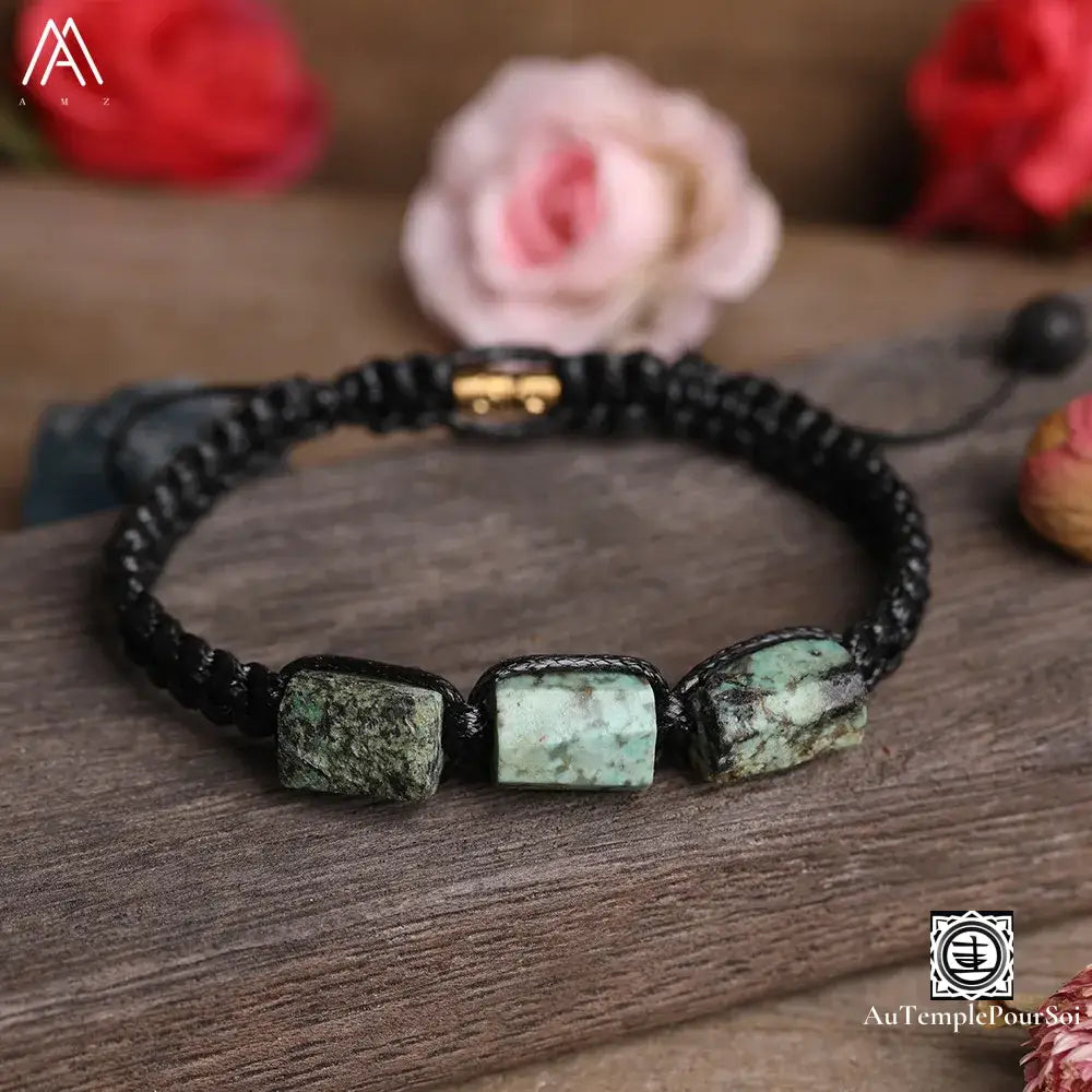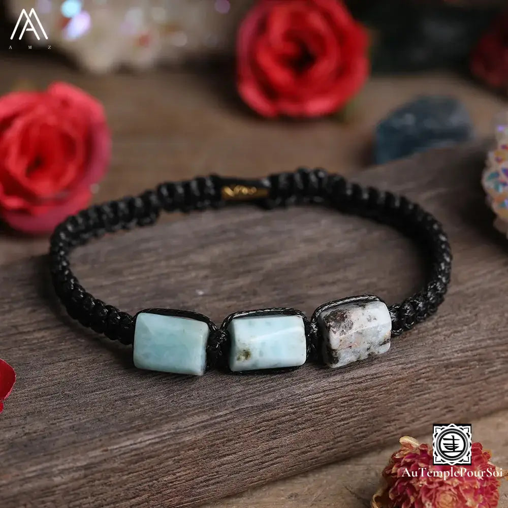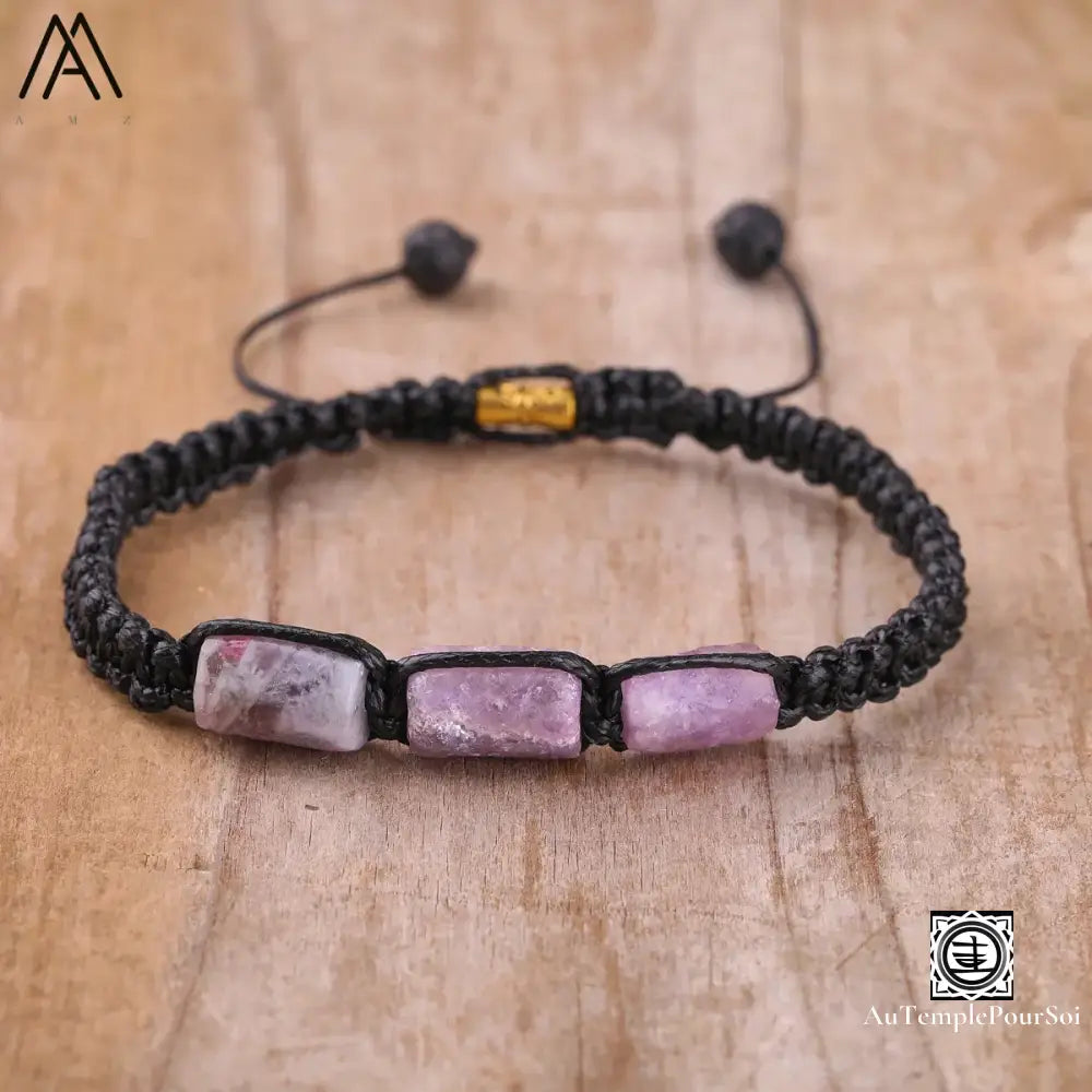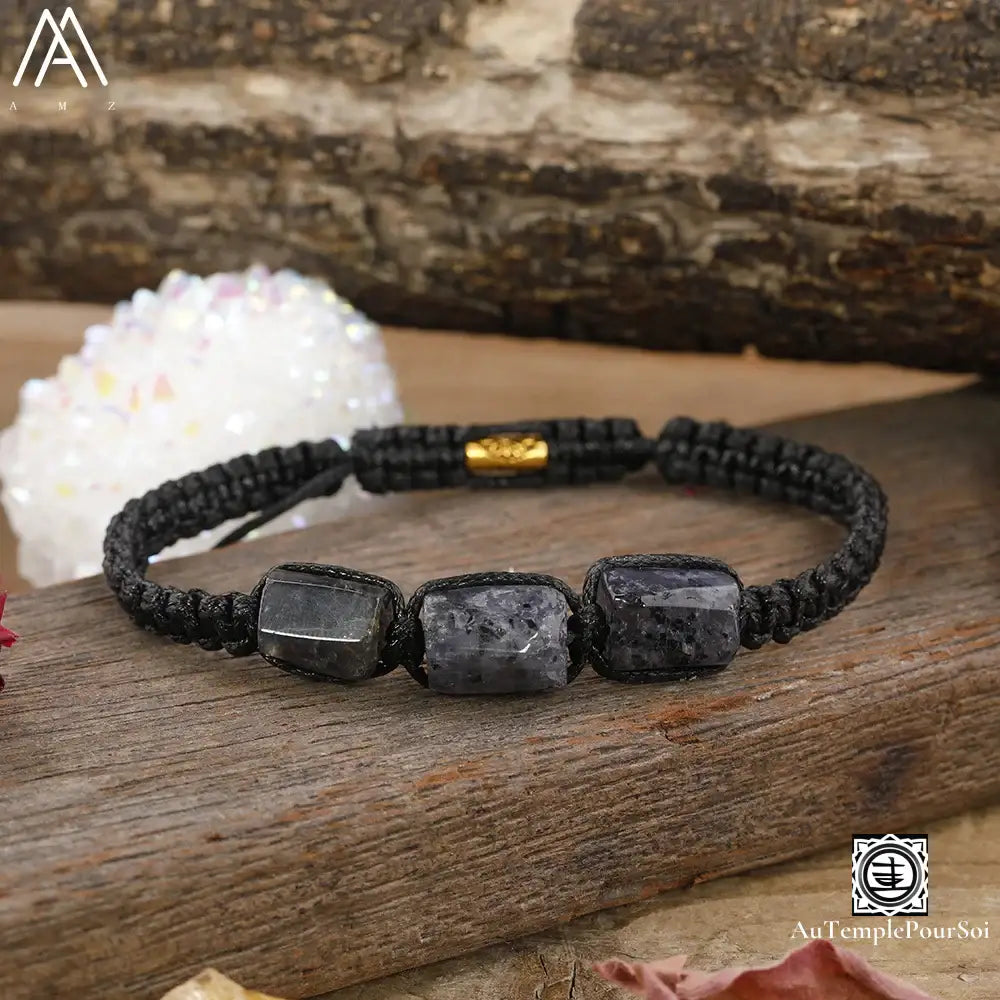 Each stone has been meticulously chosen for its unique lithotherapy qualities, forming a bracelet that is not only aesthetically striking but also rich in healing virtues. The black braided design creates a beautiful contrast that brings out the vibrant colors and varied textures of the stones, while the adjustable mechanism ensures perfect comfort for any wrist size.