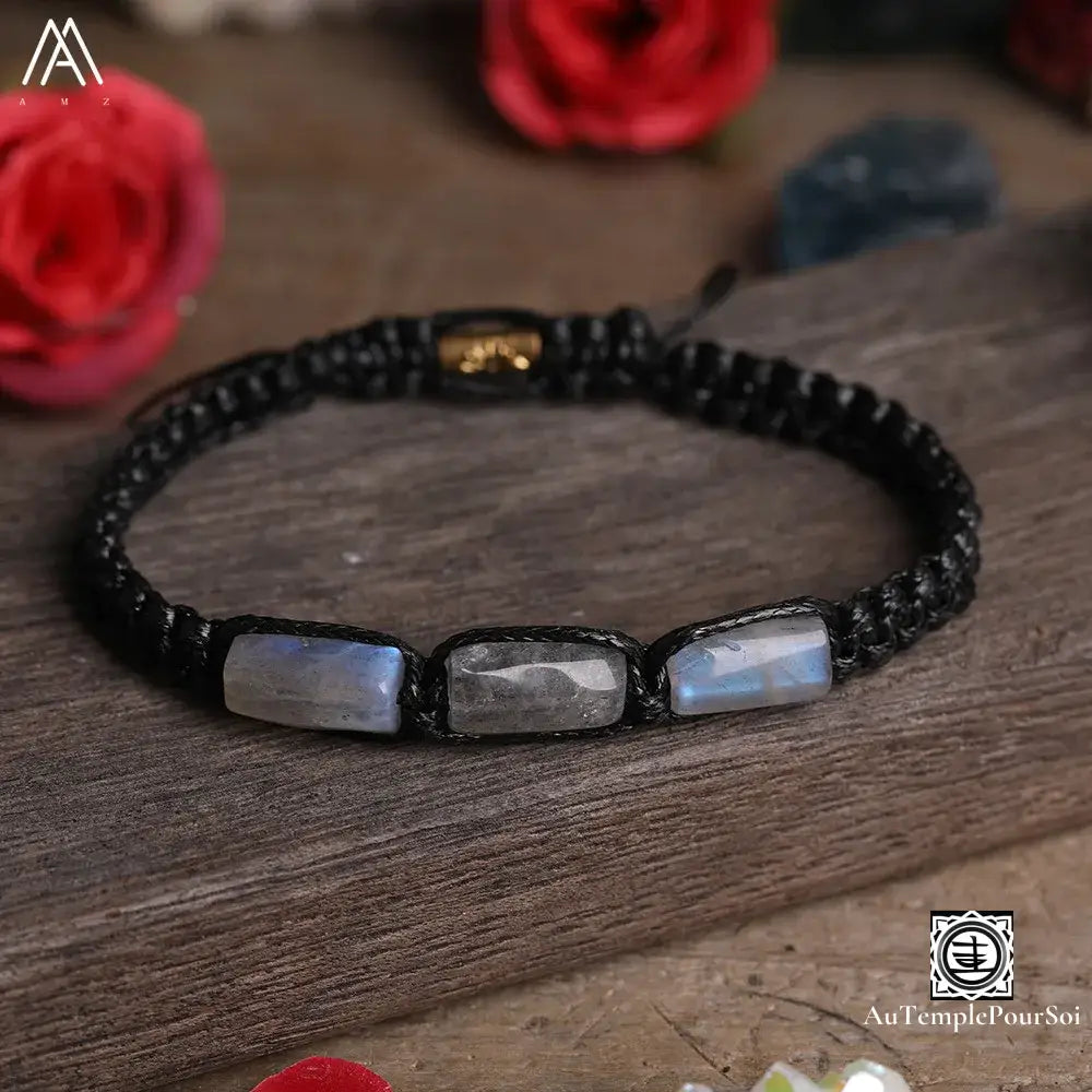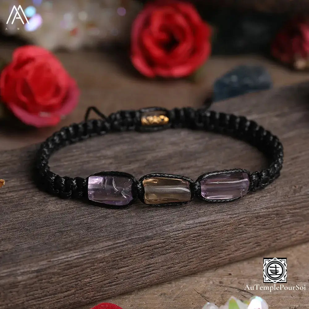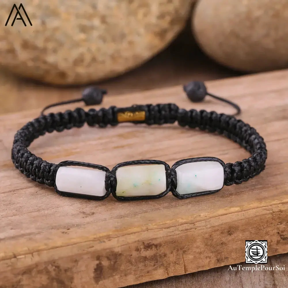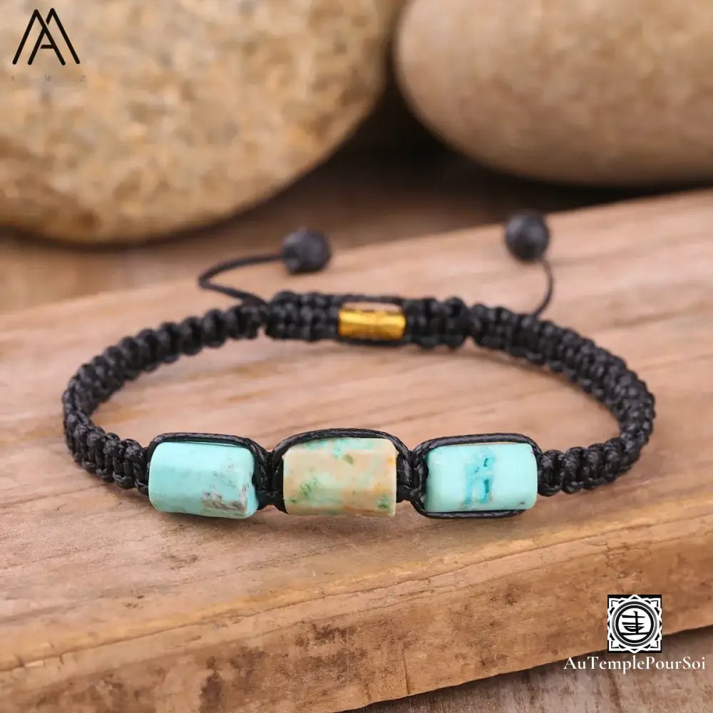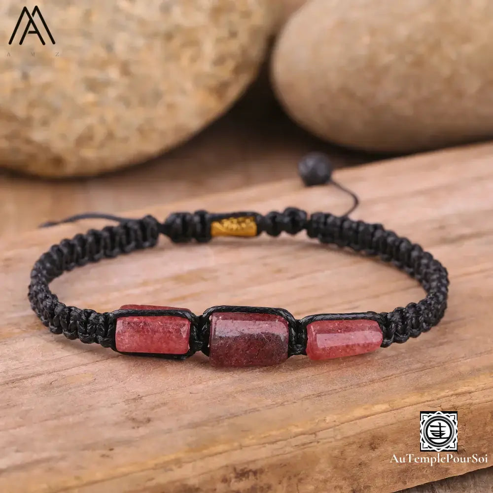 Each stone has been meticulously chosen for its unique lithotherapy qualities, forming a bracelet that is not only aesthetically striking but also rich in healing virtues. The black braided design creates a beautiful contrast that brings out the vibrant colors and varied textures of the stones, while the adjustable mechanism ensures perfect comfort for any wrist size.