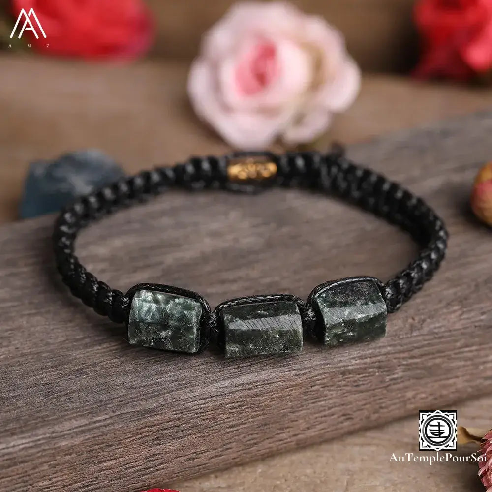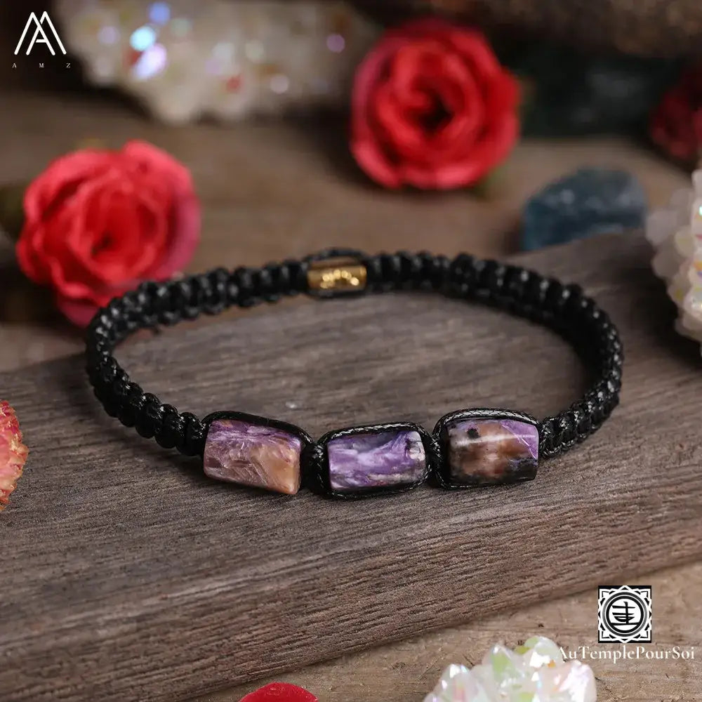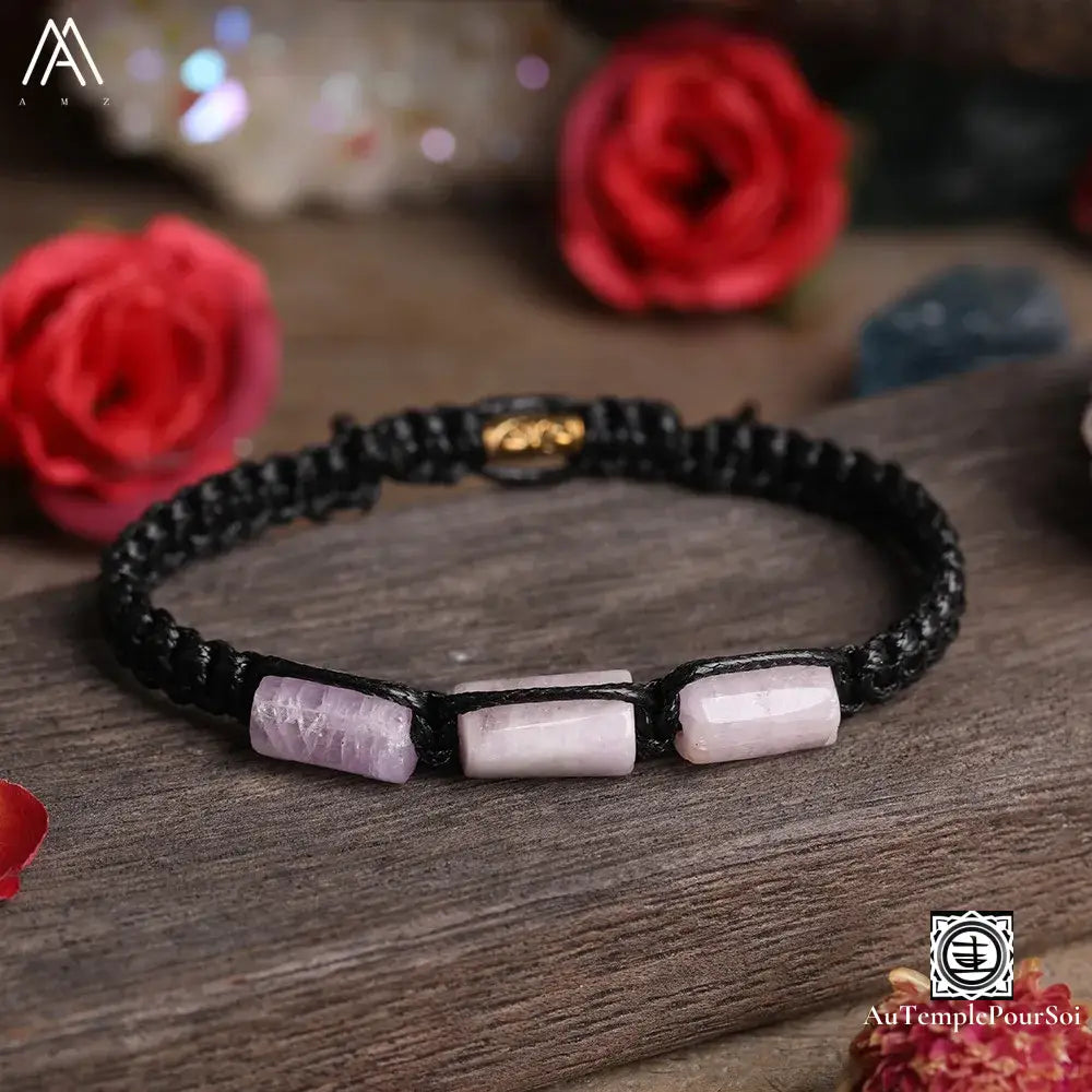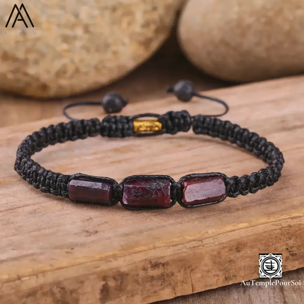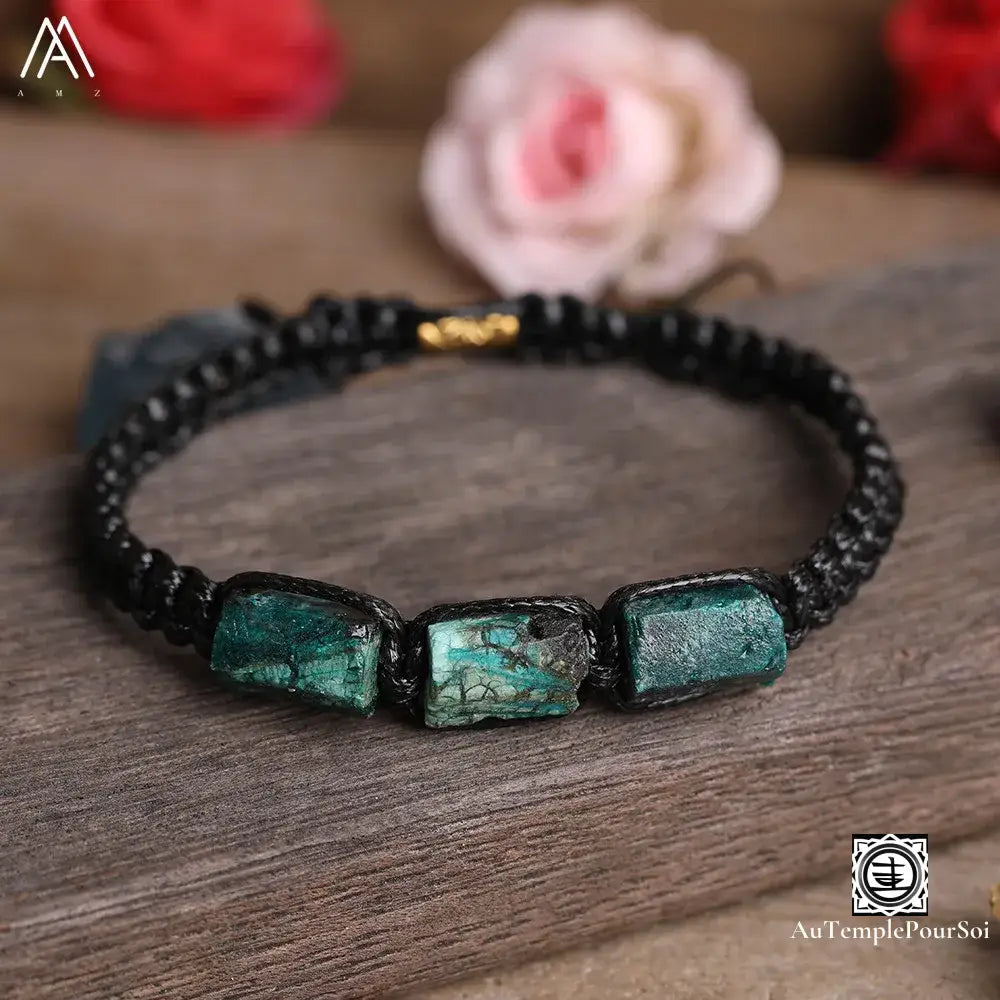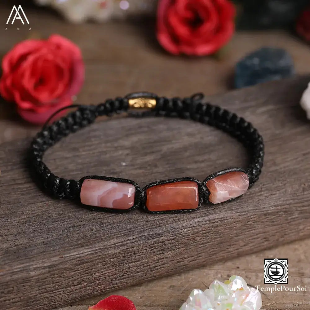 Each stone has been meticulously chosen for its unique lithotherapy qualities, forming a bracelet that is not only aesthetically striking but also rich in healing virtues. The black braided design creates a beautiful contrast that brings out the vibrant colors and varied textures of the stones, while the adjustable mechanism ensures perfect comfort for any wrist size.