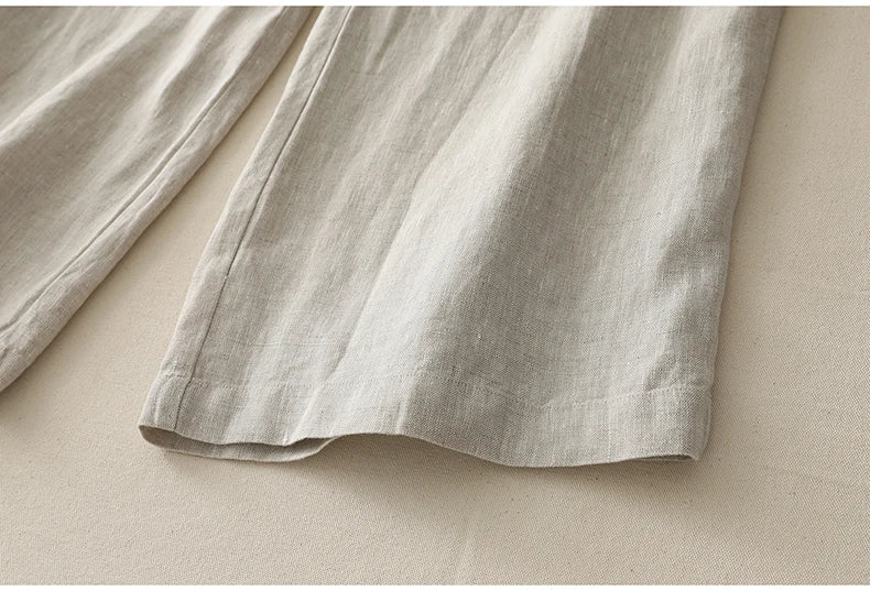"Shizuka" Pantalon femme en lin et coton | Taille haute droite, style simple et élégant