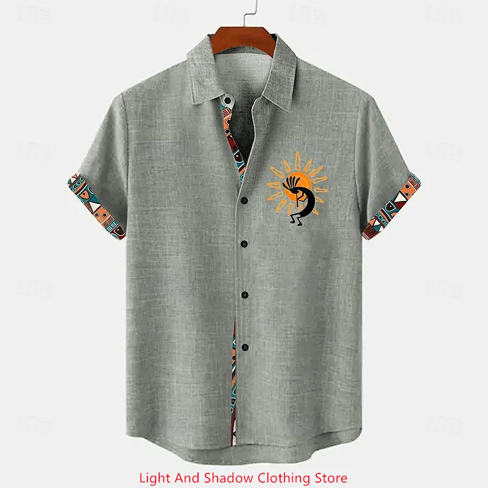 Les finitions ethniques géométriques sur la patte intérieure et sur les revers de manches dynamisent la silhouette, tandis que le motif soleil discret sur la poitrine apporte une touche graphique originale. Cette chemise lin homme s’associe aisément à un chino clair, un short en lin ou un jean brut pour composer une tenue d’été polyvalente : ville, week-end, voyage, festival.