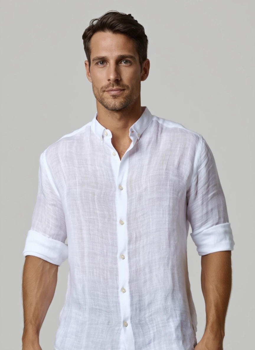 Confectionnées en 70% Lin haut de gamme et 30% coton, ces chemises assurent un confort maximal grâce à leur légèreté et à leur capacité naturelle à réguler la température. Le Col Classique structuré garantit une tenue impeccable, tandis que la texture du lin apporte une élégance naturellement froissée.