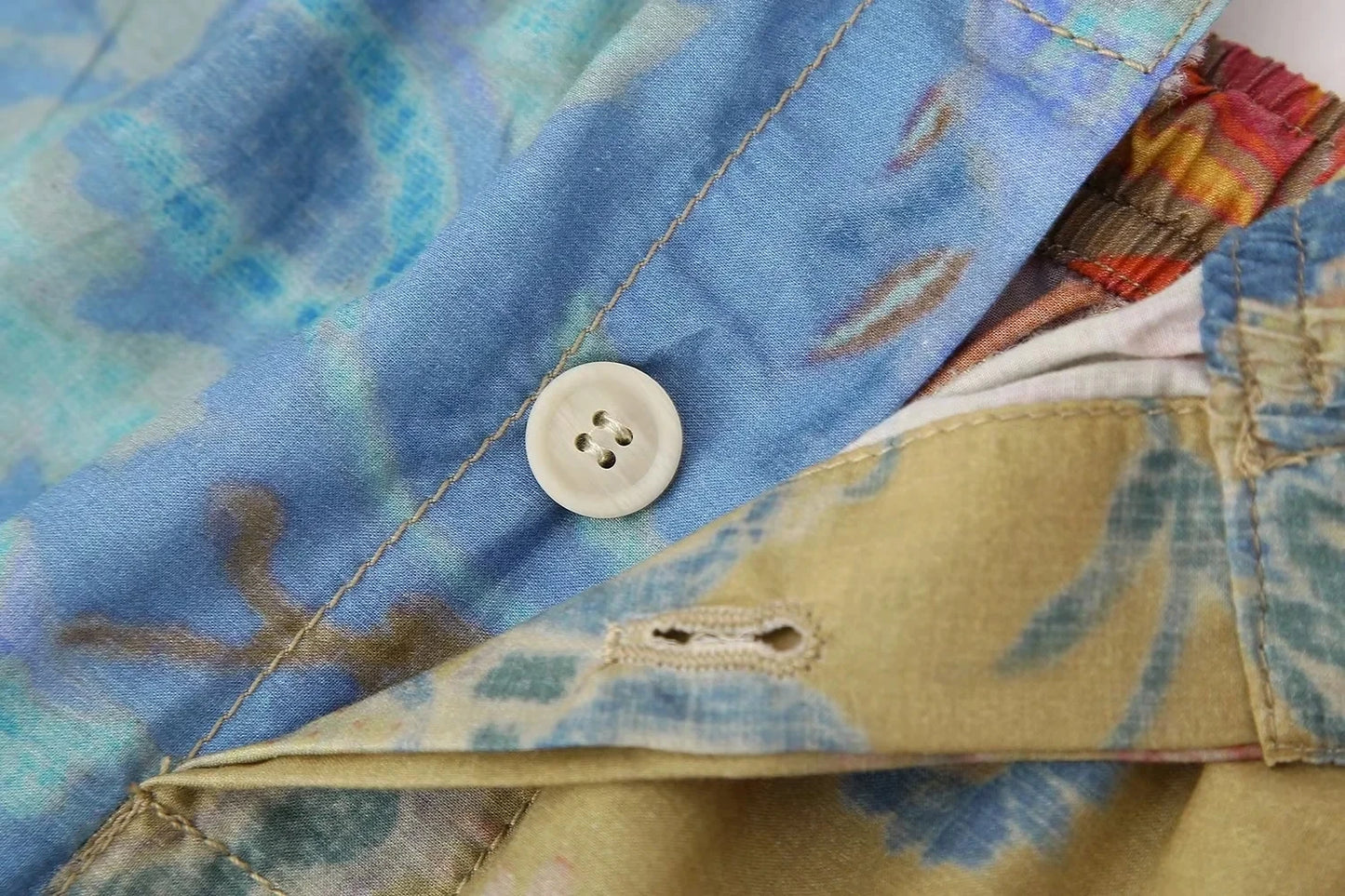 La chemise fluide, légère et respirante, se distingue par son imprimé tie-dye aux nuances subtilement vintage, tandis que le pantalon ample et confortable offre une silhouette longiligne et relaxée. Conçu avec soin à partir de matières douces, cet ensemble assure un confort optimal tout au long de la journée.