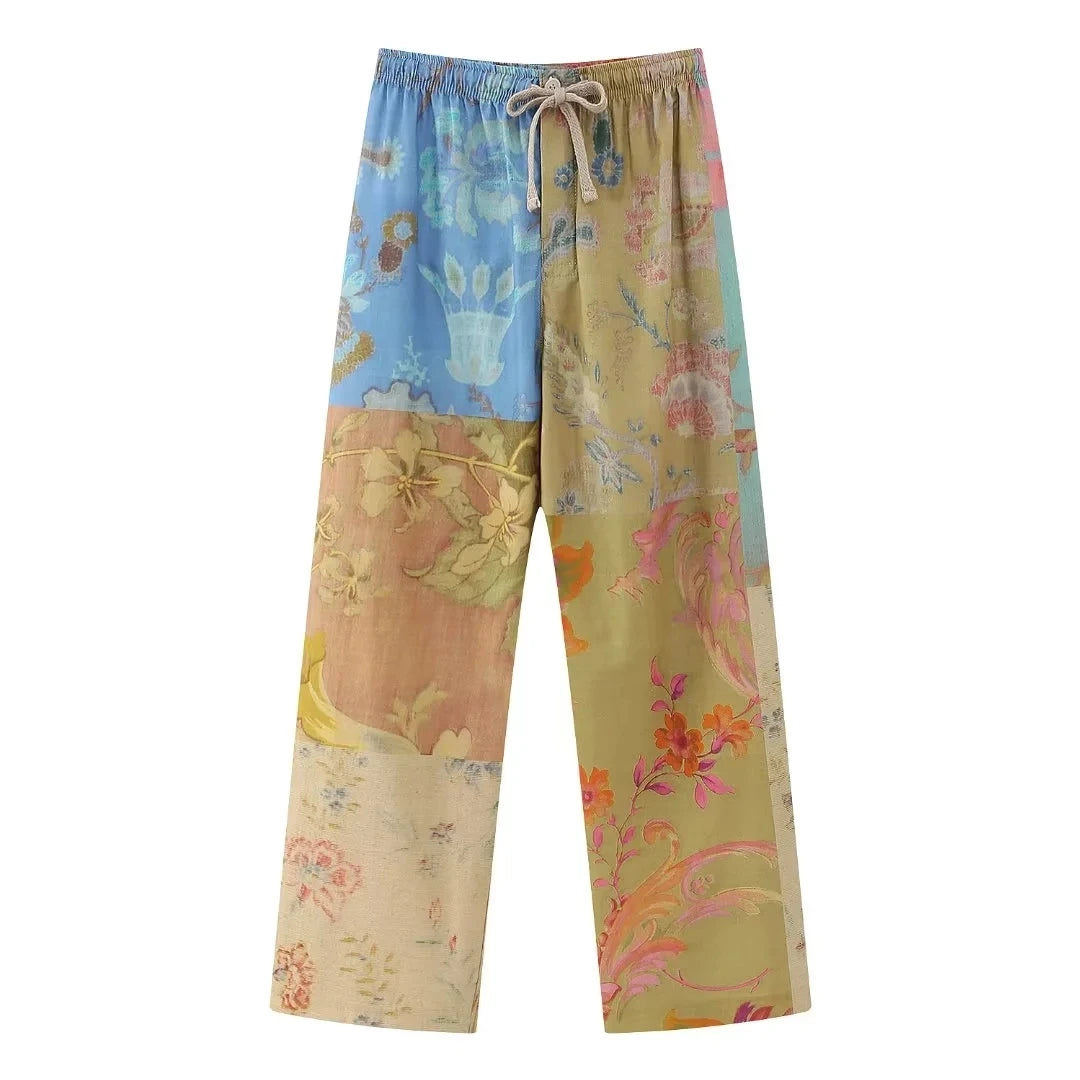 "Bohème Nomade" Ensemble Vintage Bohème – Chemise Fluide Tie-Dye et Pantalon Ample