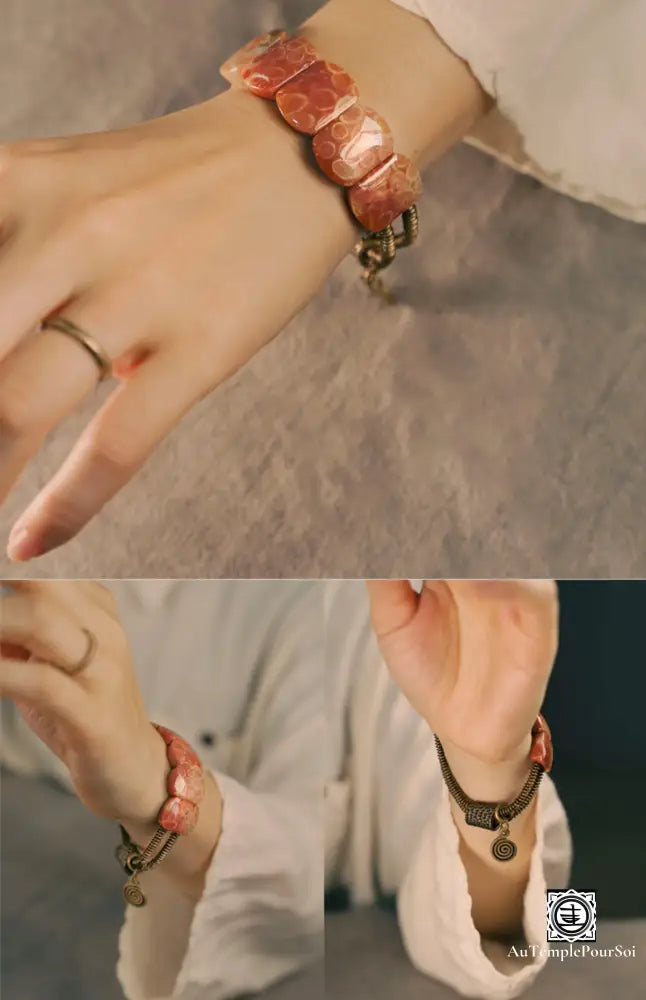 Le bracelet en cuivre est reconnu pour ses nombreux bienfaits sur la santé. En favorisant la circulation sanguine, il contribue au soulagement des douleurs articulaires, notamment pour les personnes souffrant d'arthrose. Les pierres naturelles rouges apportent également des propriétés énergétiques bénéfiques, renforçant ainsi les effets positifs du cuivre.