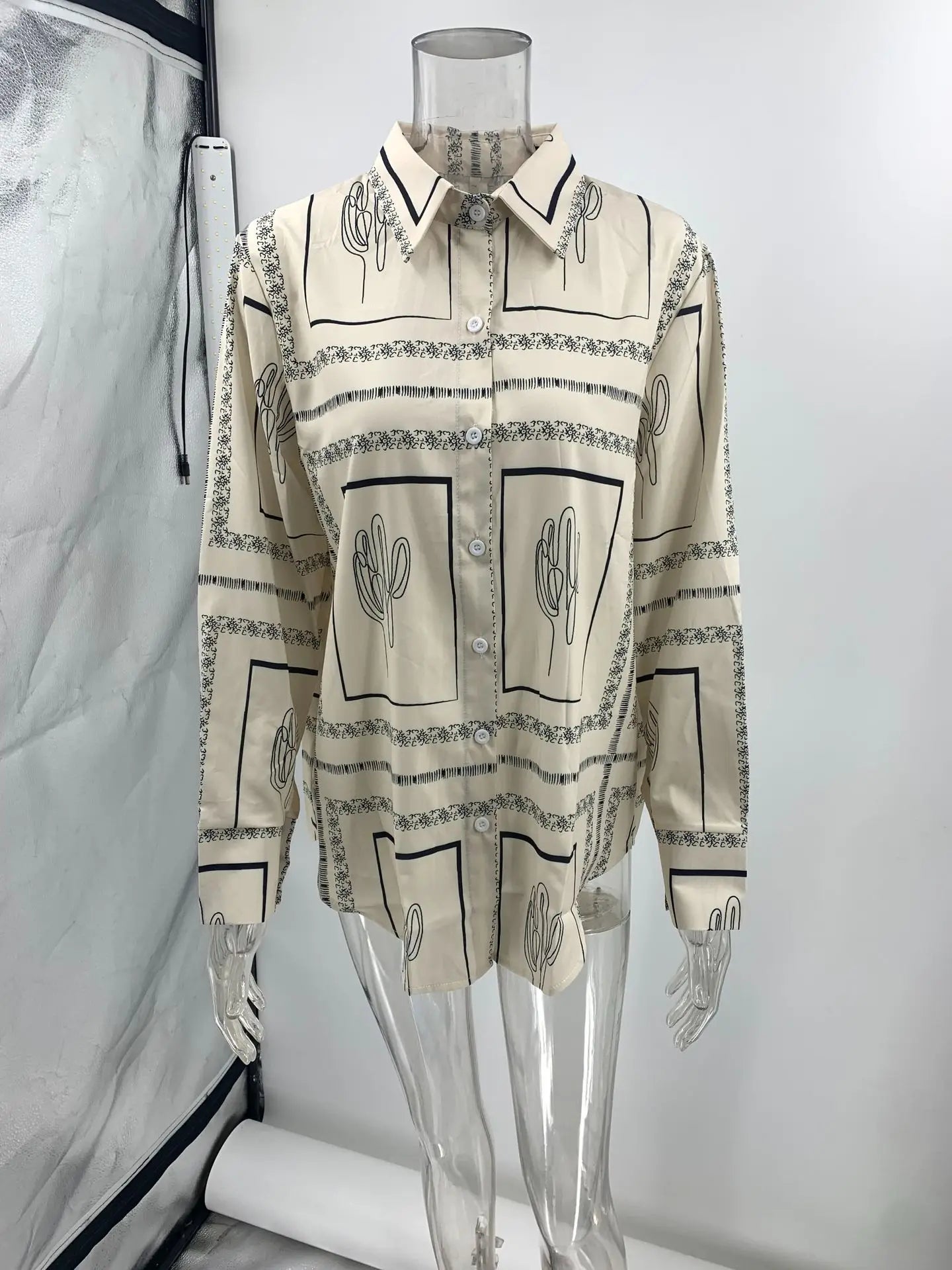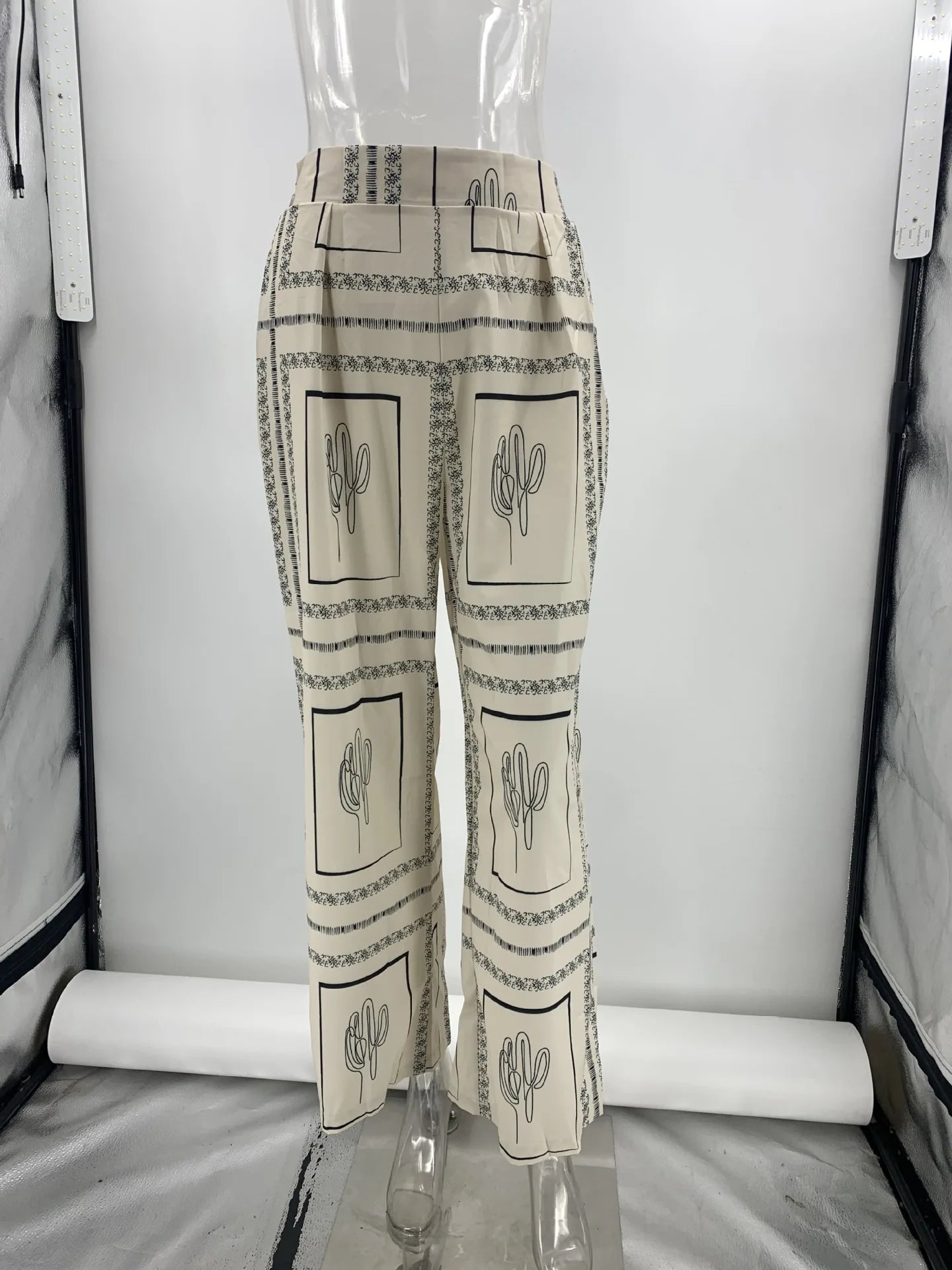 "Cactus Bohème" Ensemble Désert Chic – Chemise et Pantalon Large Taille Haute