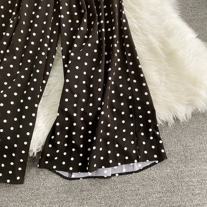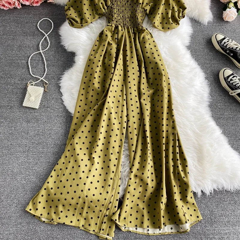 Découvrez la combinaison femme à pois, un indispensable de votre garde-robe chic et élégante. Sa coupe taille haute mettra en valeur votre silhouette, tandis que ses manches à jambes larges apporteront une touche de sophistication à votre tenue. Confectionnée dans une matière fluide et agréable à porter, ce vêtement au design raffiné vous assure un look à la fois tendance et intemporel.