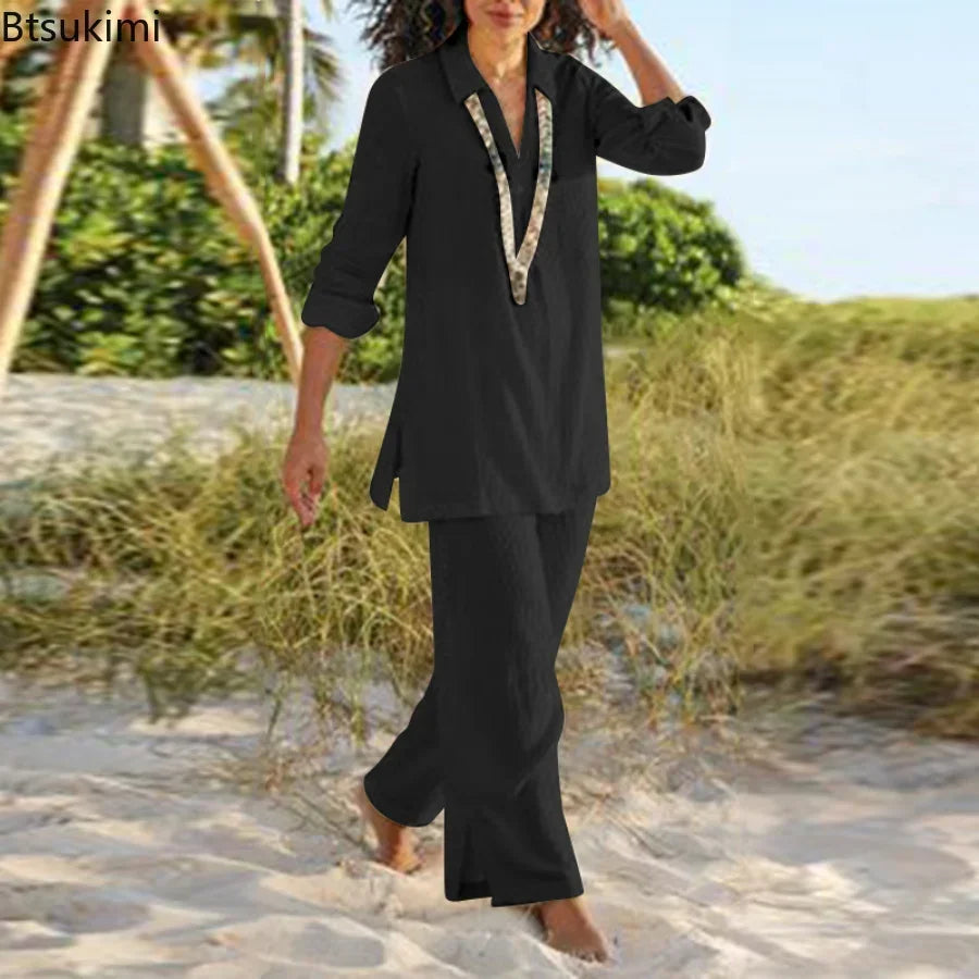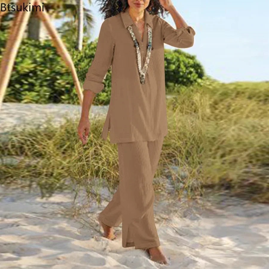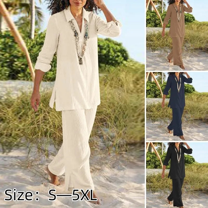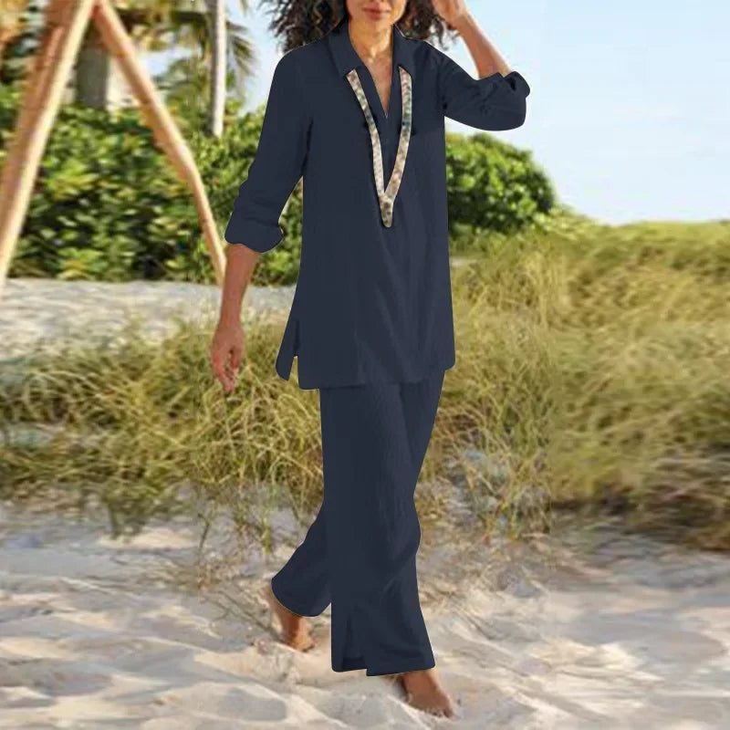 Ensemble Oasis Linéa – Tunique longue & Pantalon large en mélange lin-coton