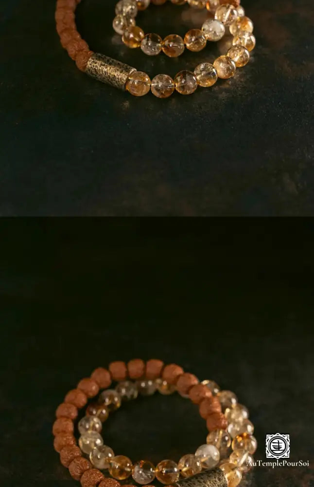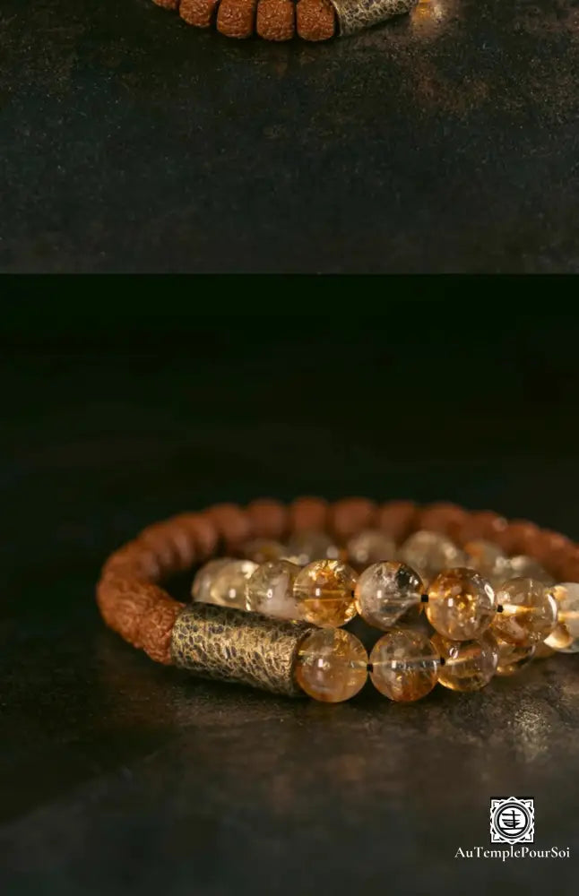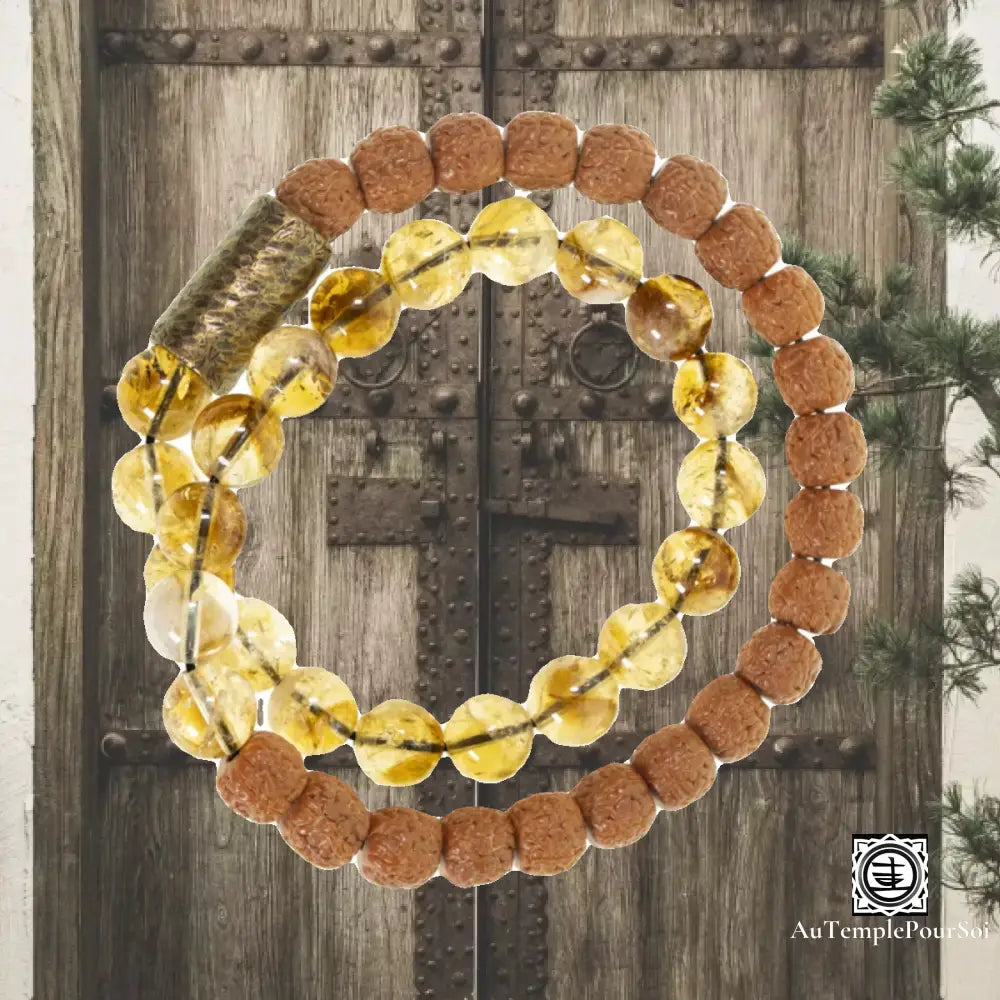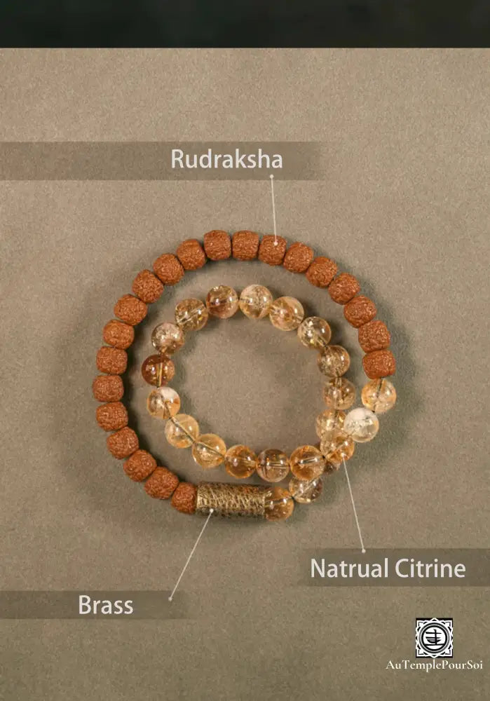 Bracelet en cuivre et graines de Rudraksha et Citrine pour la santé et la chance
