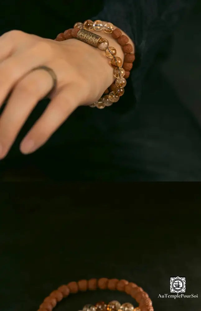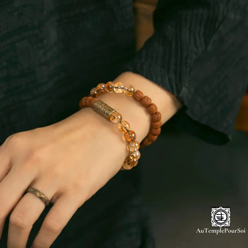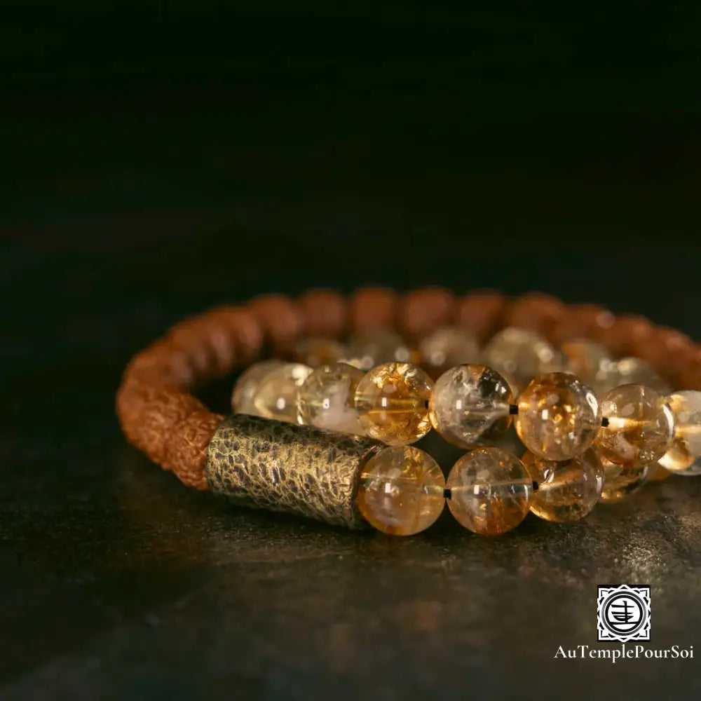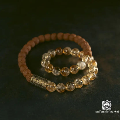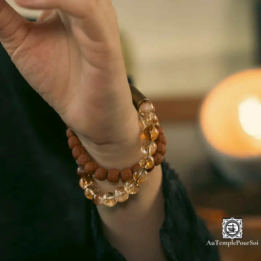 Bracelet en cuivre et graines de Rudraksha et Citrine pour la santé et la chance