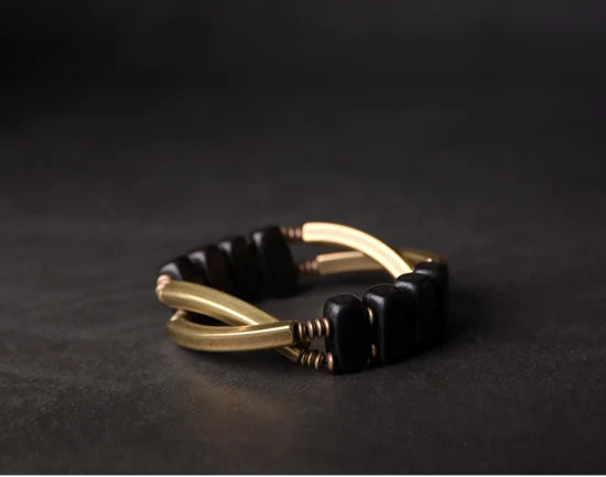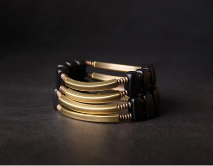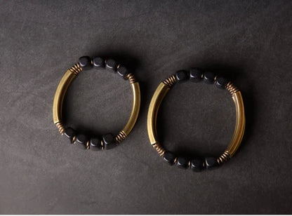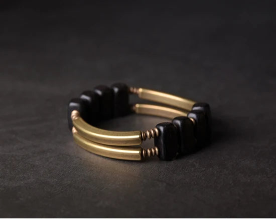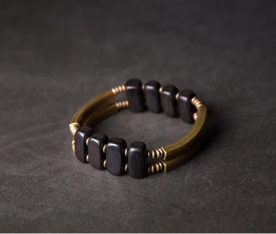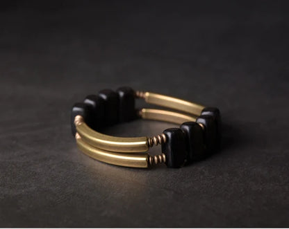 Bracelet en cuivre géométrique unique avec perles en ébène