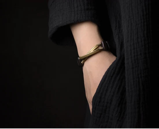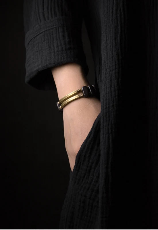 Sculpté dans l’harmonie parfaite entre la chaleur du cuivre et la profondeur du bois d’ébène, ce bracelet incarne la force tranquille et l’élégance naturelle.