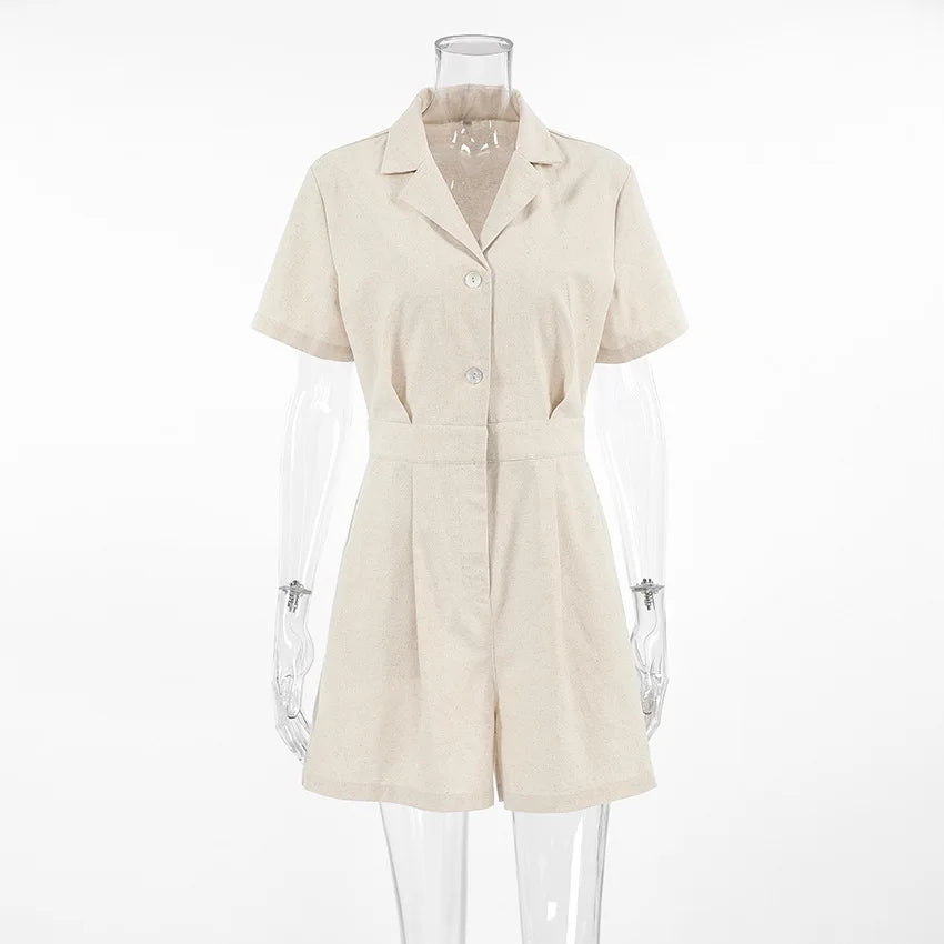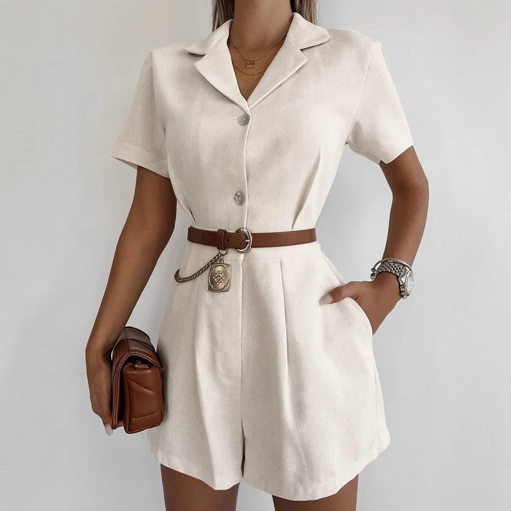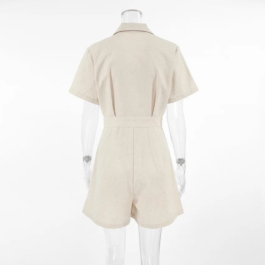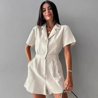 "Hikari Lumière" Combinaison Femme en Coton et Lin Col V