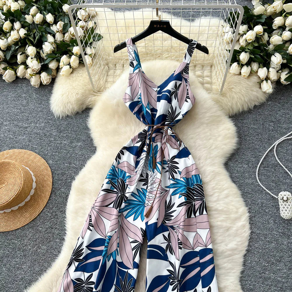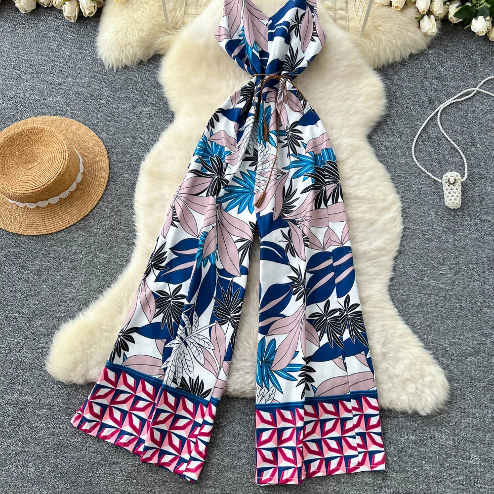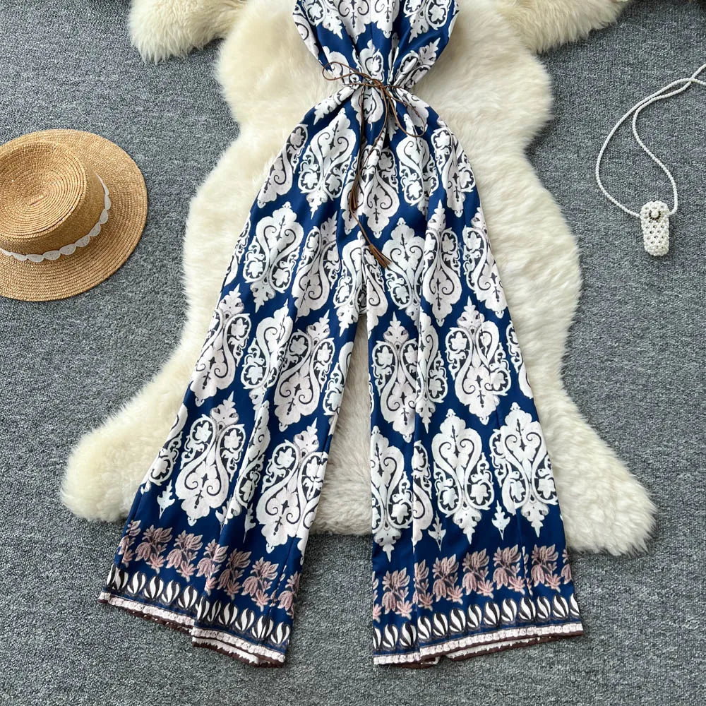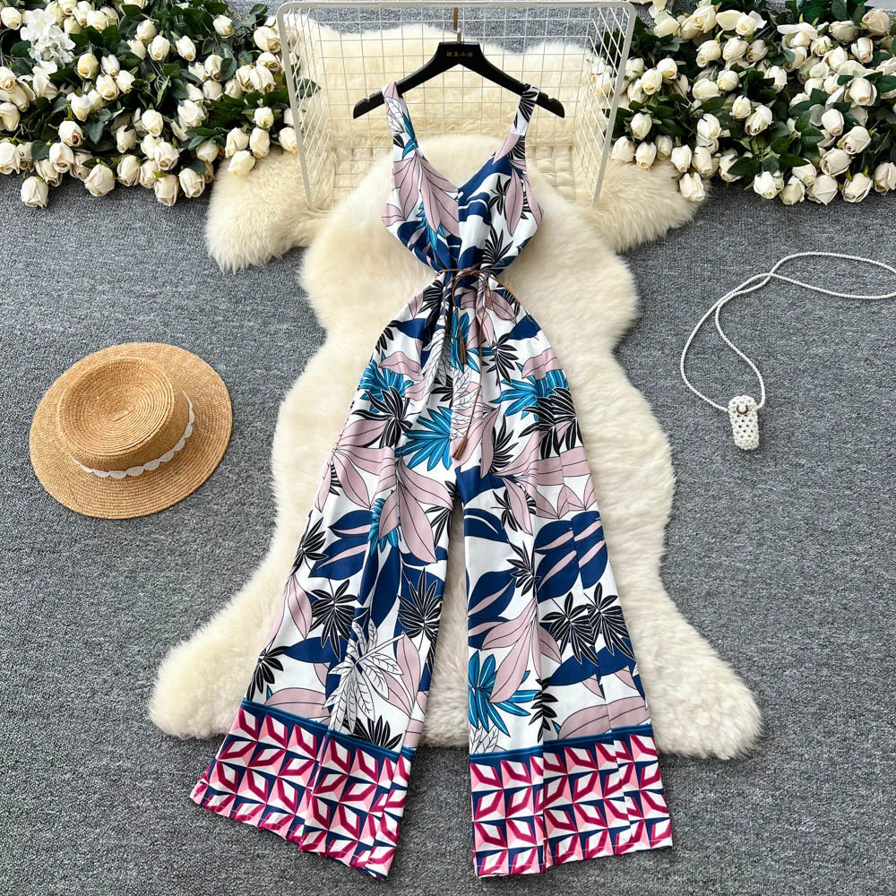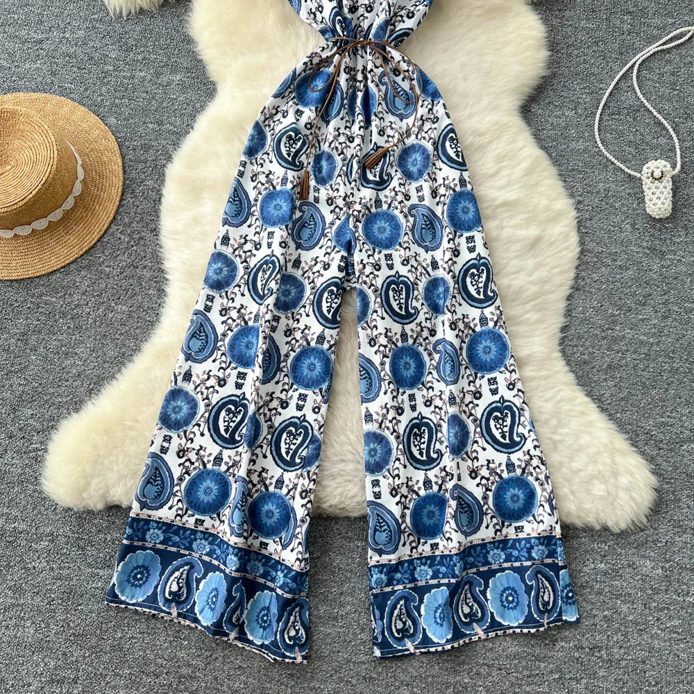 "Sakura Éclat" Combinaison Longue Vintage Femme Été dos Nu