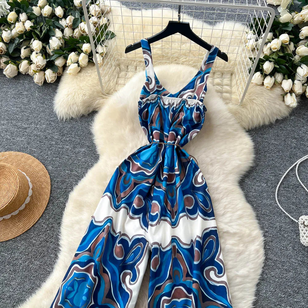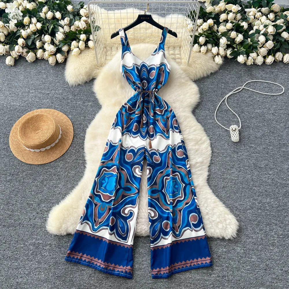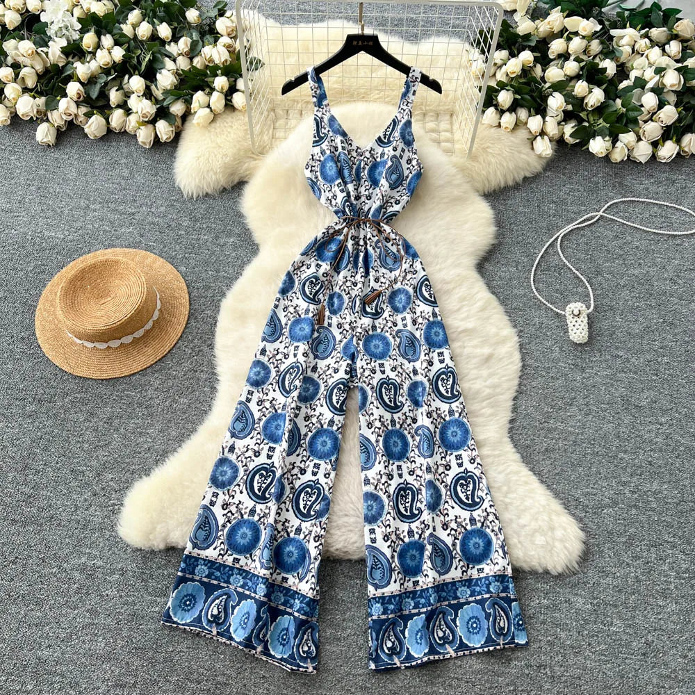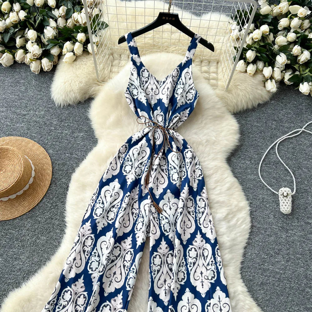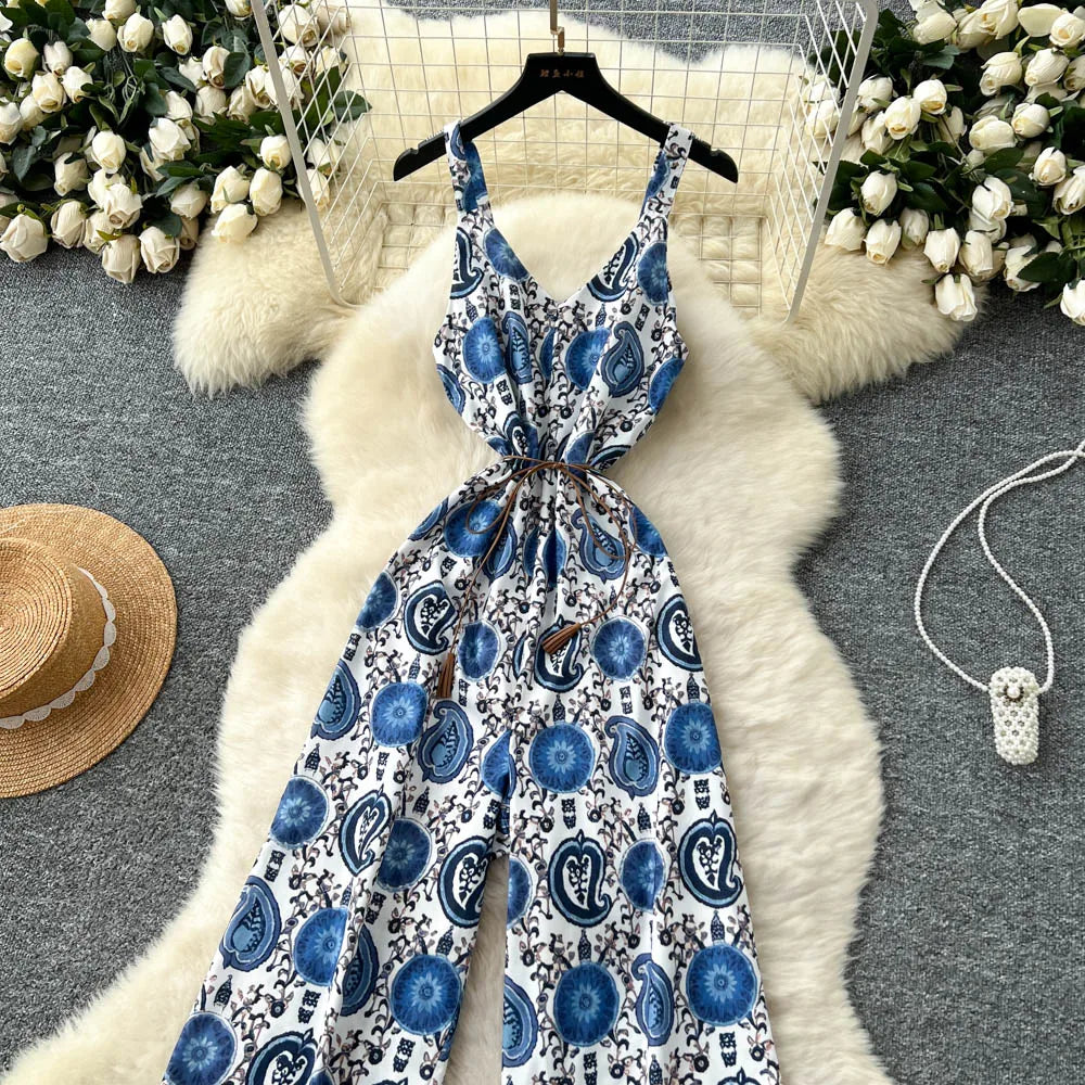 "Sakura Éclat" Combinaison Longue Vintage Femme Été dos Nu