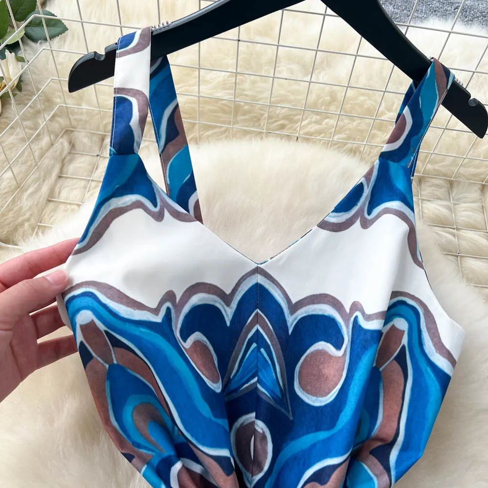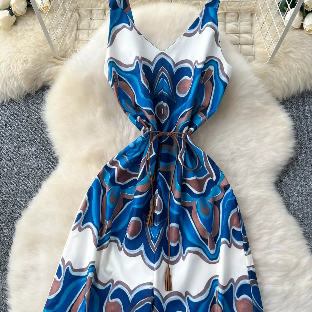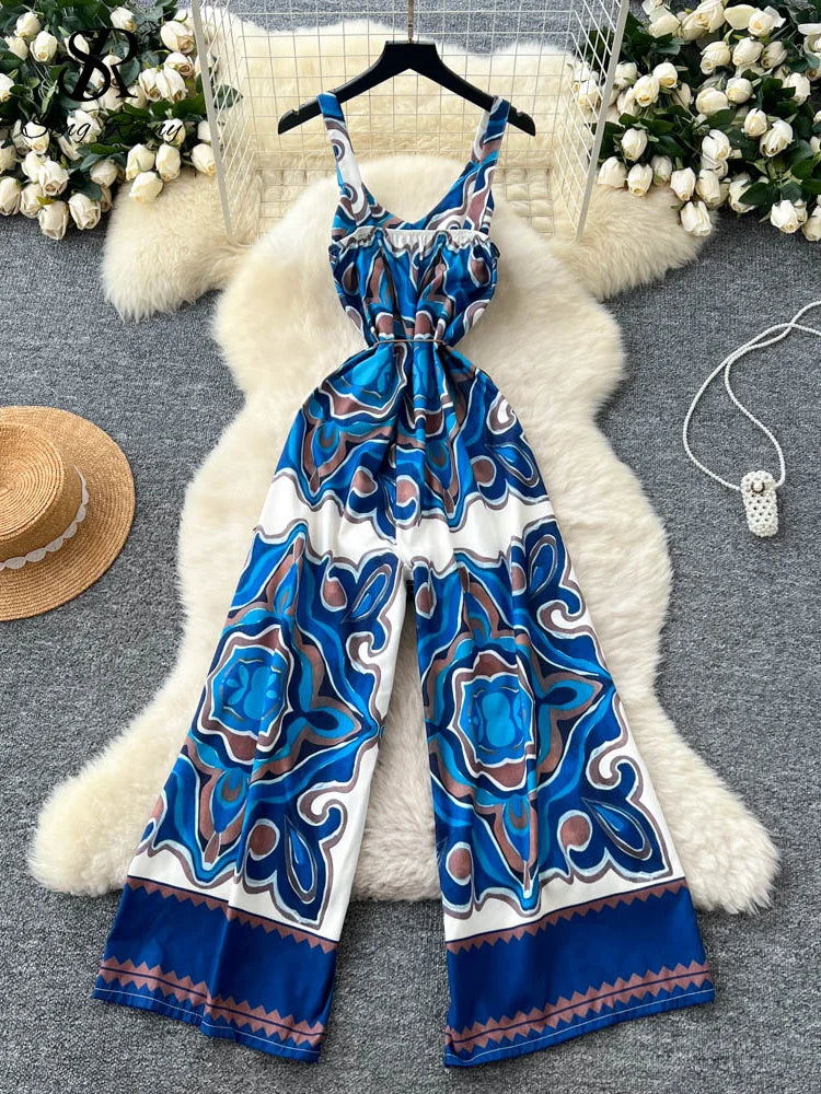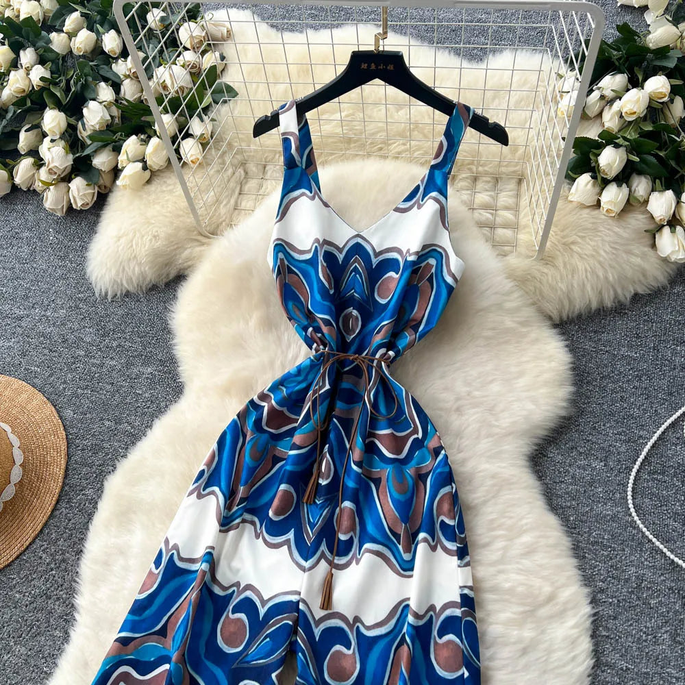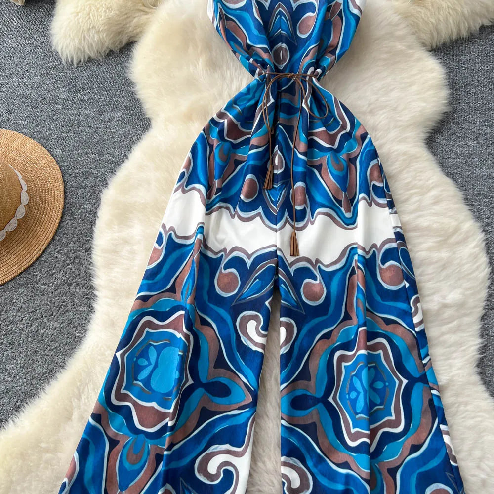 "Sakura Éclat" Combinaison Longue Vintage Femme Été dos Nu
