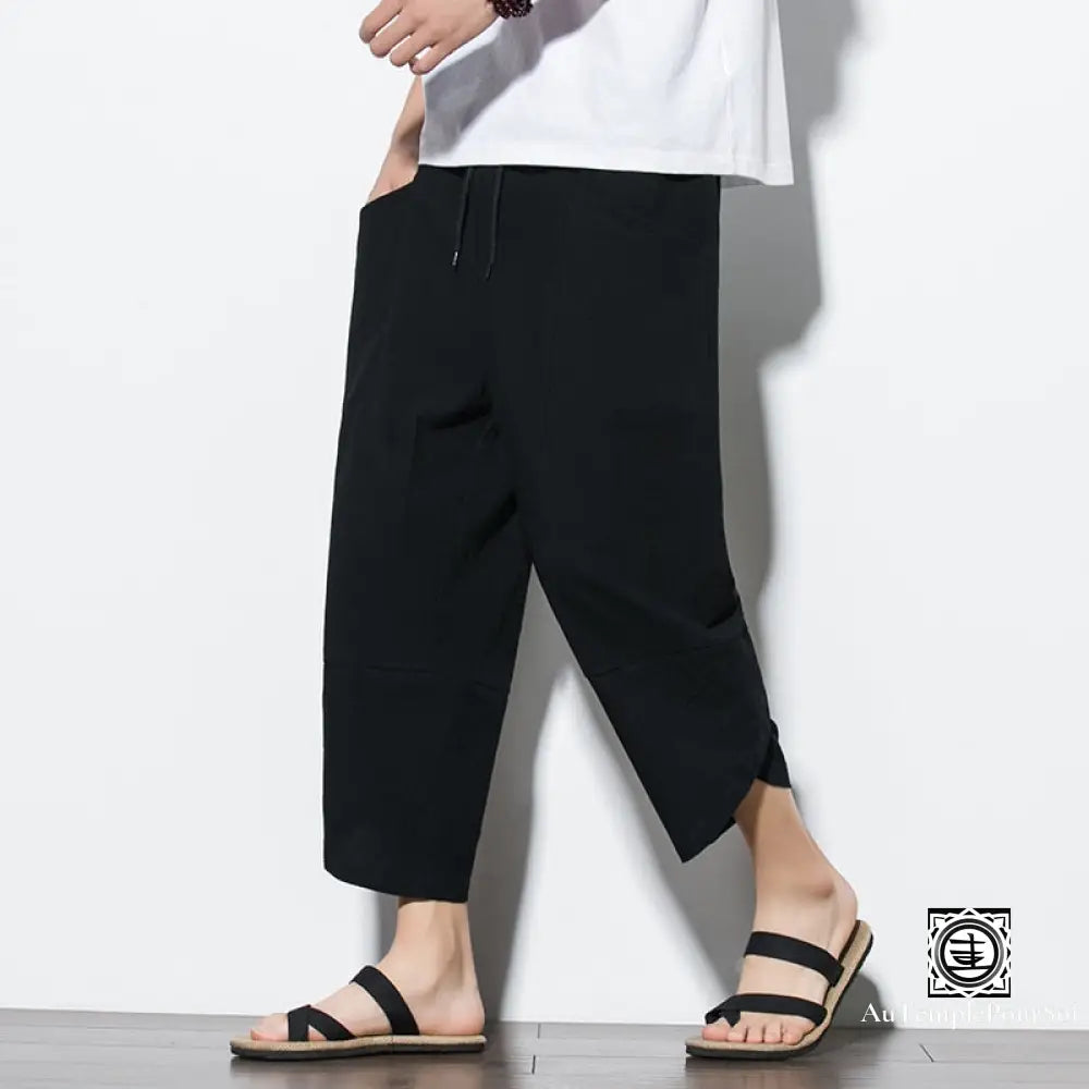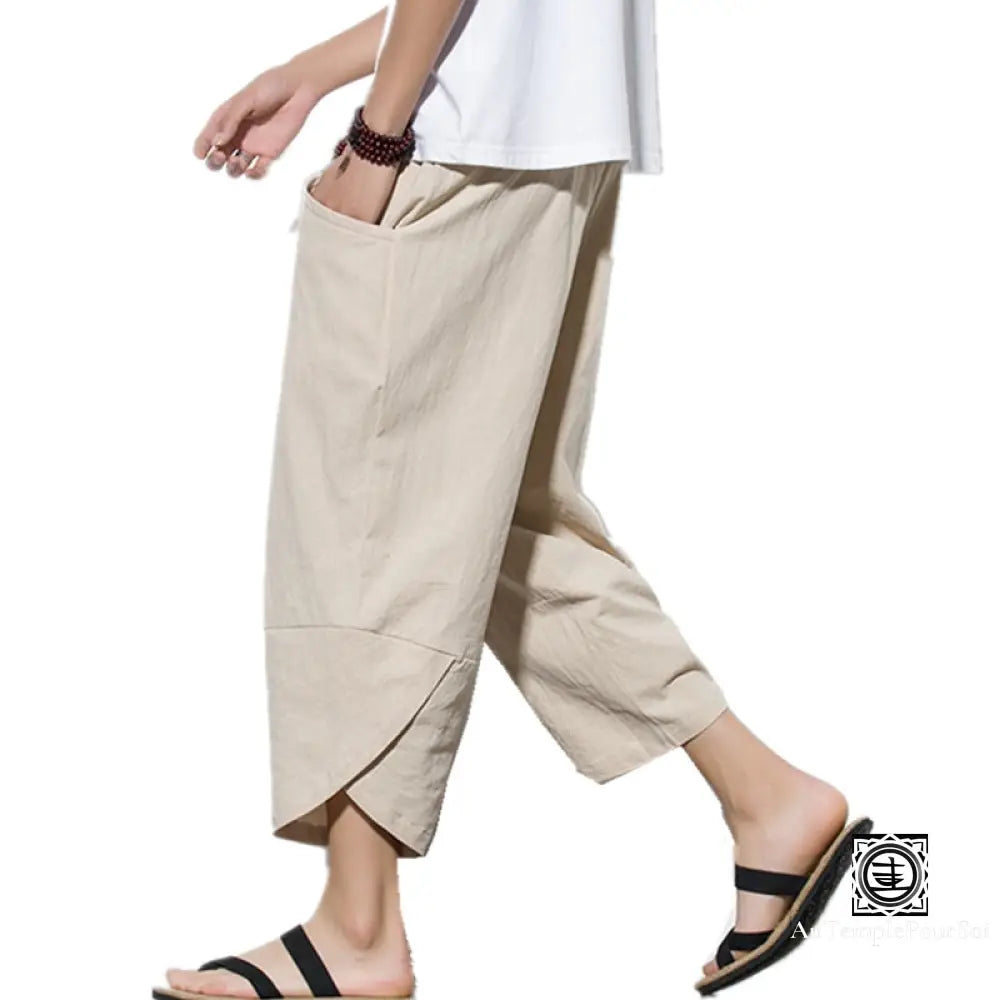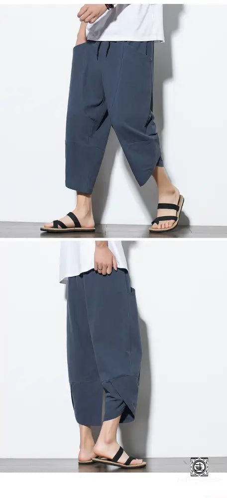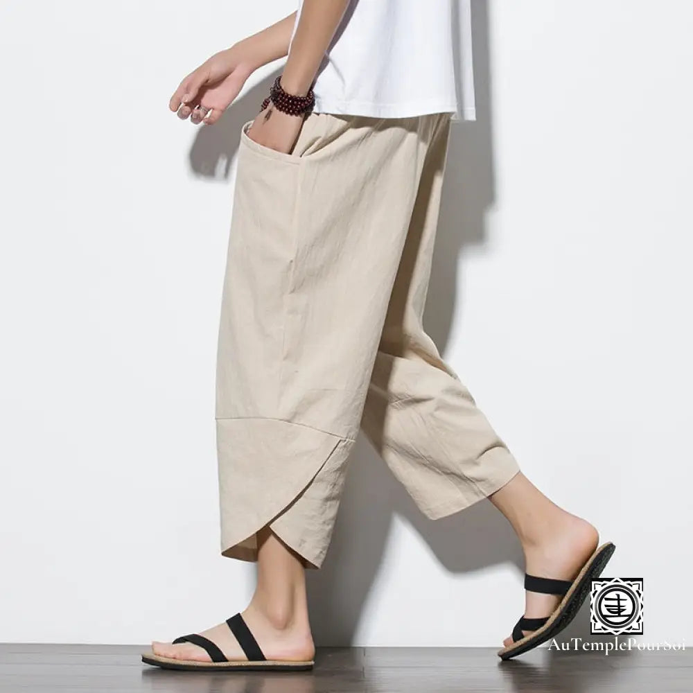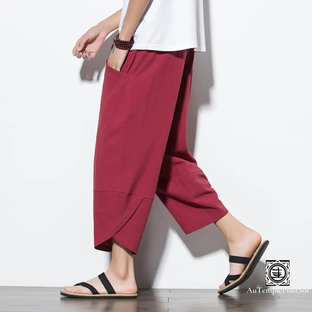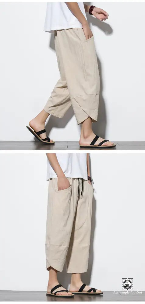 Ce pantalon sarouel est conçu avec du coton et du lin pour offrir une sensation de confort et une respirabilité exceptionnelles. Avec sa longueur mollet, ce pantalon est parfait pour les journées d'été décontractées.