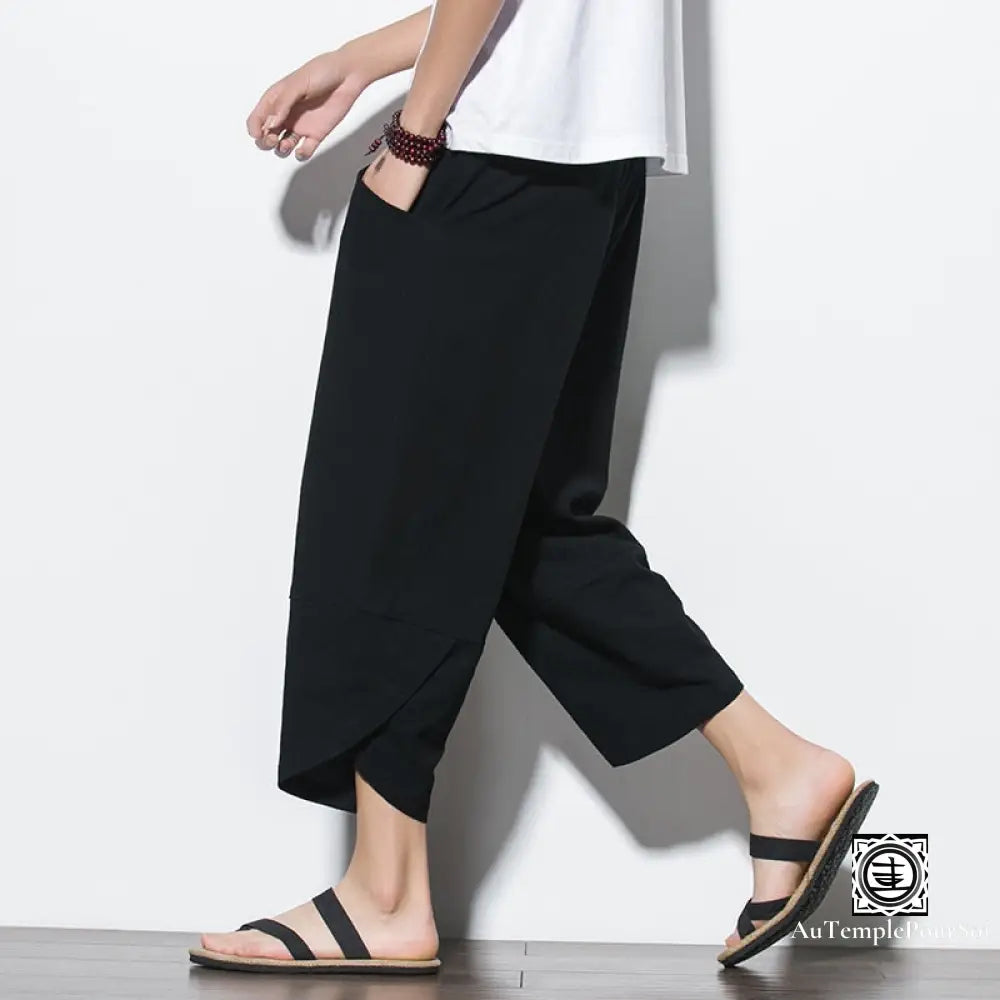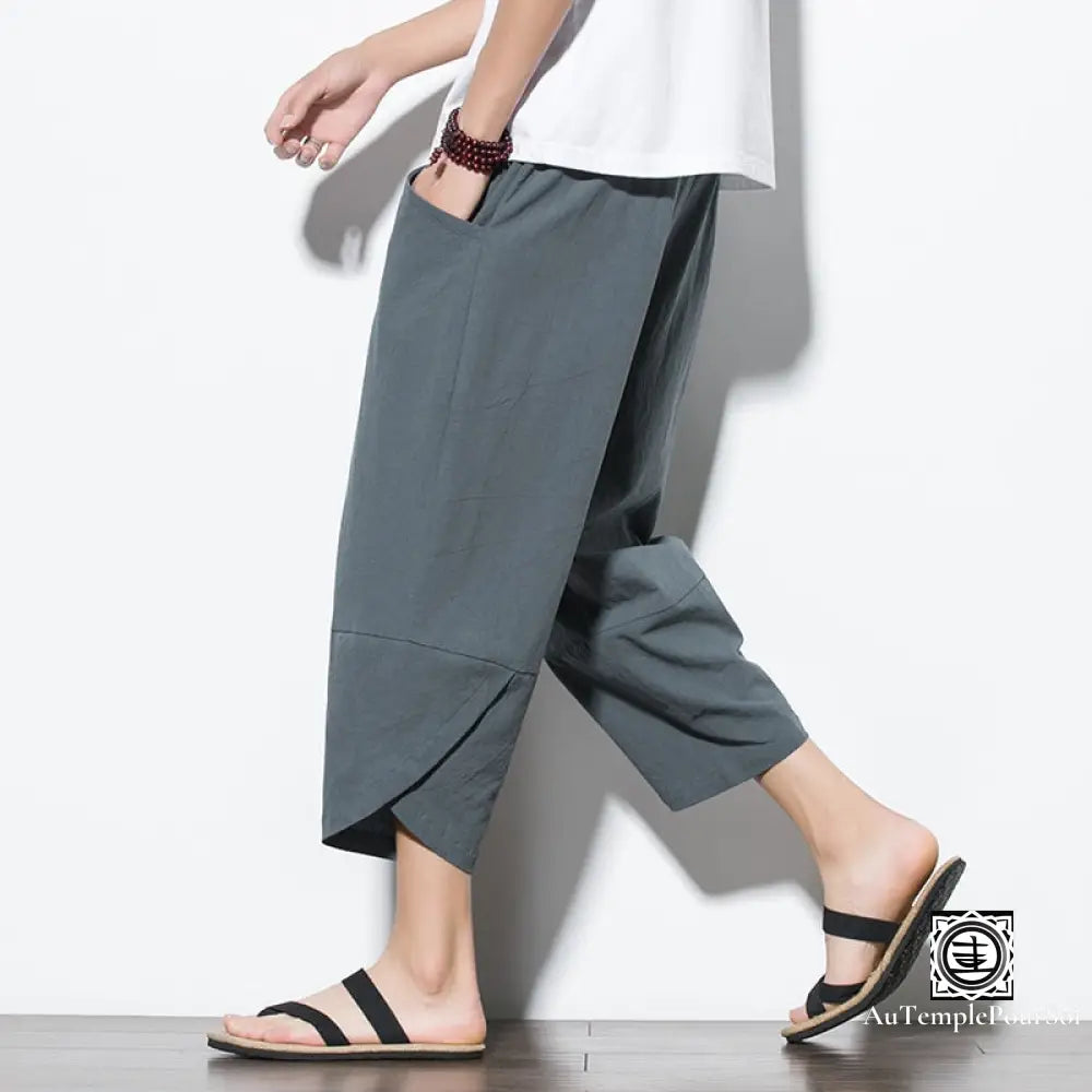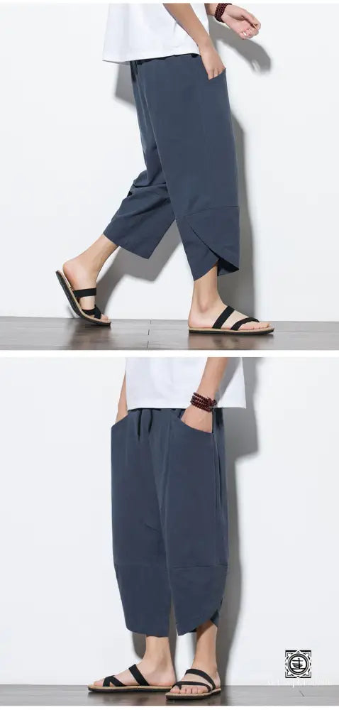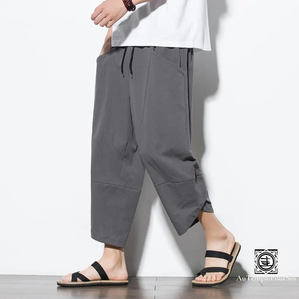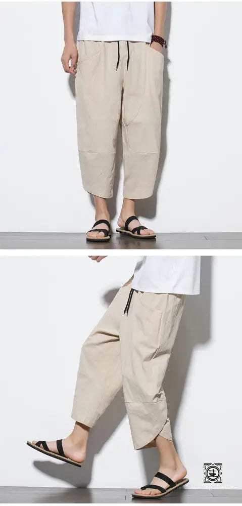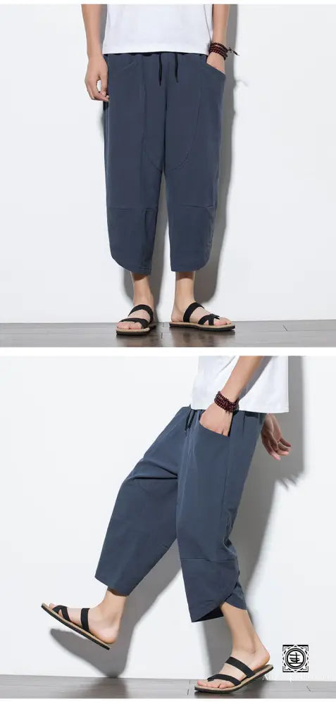 Ce pantalon sarouel est conçu avec du coton et du lin pour offrir une sensation de confort et une respirabilité exceptionnelles. Avec sa longueur mollet, ce pantalon est parfait pour les journées d'été décontractées.