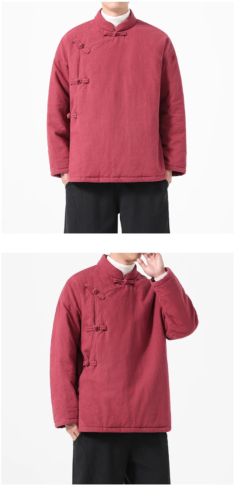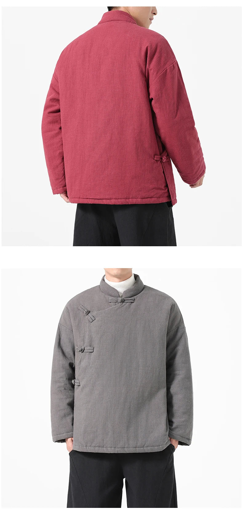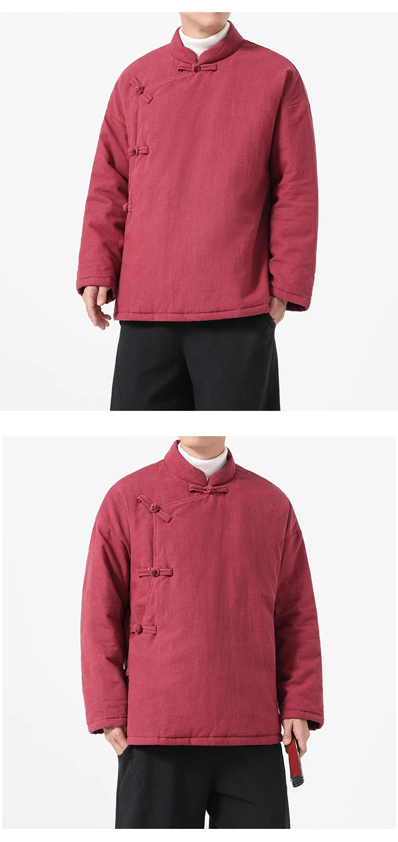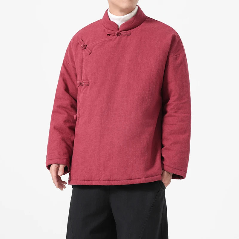 Conçu comme un véritable hanfu jacket hiver, ce modèle est généreusement rembourré et matelassé pour garantir une isolation parfaite contre le froid. Sa coupe lâche et confortable permet une grande liberté de mouvement tout en restant bien au chaud. Ce manteau chinois homme épais est l'allié idéal pour affronter la saison hivernale avec style.